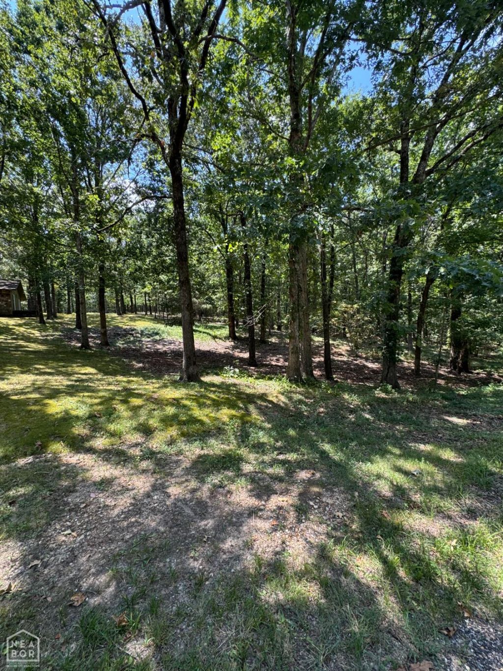 Wooded lot with sloping hill. Low area in the front middle of the property.
