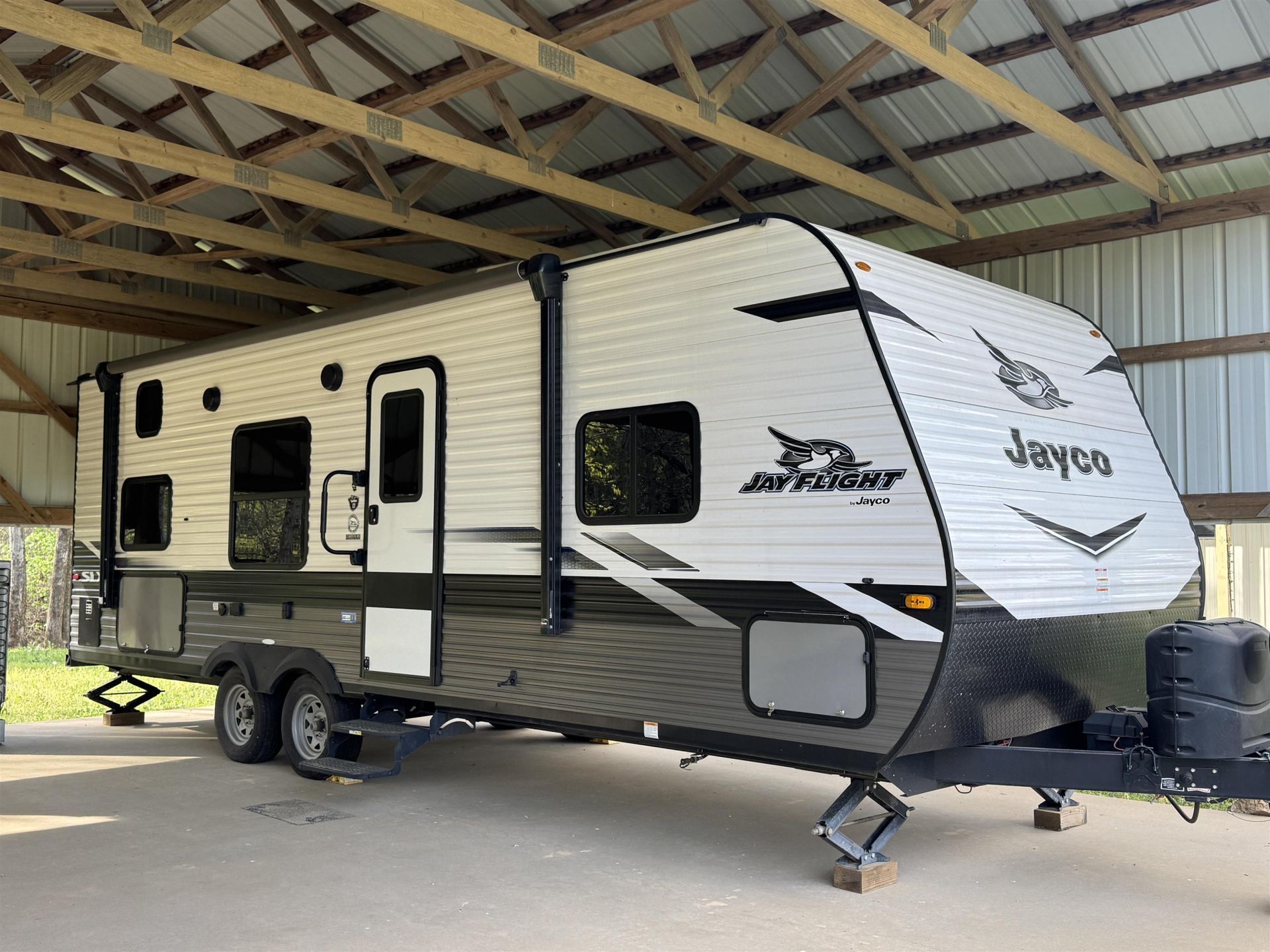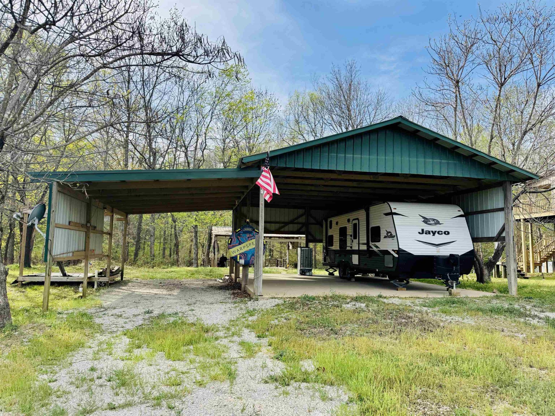 Discover a unique waterfront opportunity on 2 lots along Beason Creek, a short .3 +/- mile boat, golf cart ride or walk to the TN River. This property is ideal for outdoor enthusiasts, RV owners, or those seeking a retreat near the water. Perfect for entertaining, the Covered Concrete Area & 2 level deck provides a great space to unwind while access to a dock on the creek makes it easy to enjoy boating, fishing, or simply taking in the view. The property is well-equipped for multiple RV setups, including a large covered RV pad, 3 RV septic hookups & 200-amp service that supports 3 RV connections. A separate bathroom has been started. There is a 2022 Jayco Jayflight 264BH available for separate sale with purchase of the property. Community Boat Ramp & Beach area located on the River.