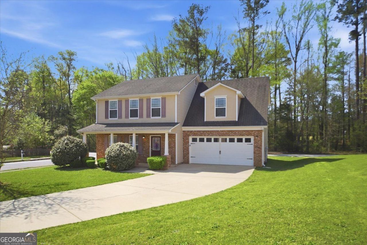 Welcome to this stunning home in the highly sought-after Highgrove Trail subdivision, perfectly positioned on a large corner lot with exceptional curb appeal. From the moment you arrive, you'll notice the lush landscaping, charming brick accents, expansive front porch, and extended driveway leading to an attached two-car garage with a utility room for added storage. Inside, the thoughtfully designed floorplan offers both comfort and functionality, featuring 4 spacious bedrooms and 2.5 bathrooms. The main level includes a separate dining area and a generously sized family room-ideal for entertaining or relaxing. The kitchen is a true highlight, complete with solid-surface countertops, rich cabinetry with upgraded hardware, stainless steel appliances, and a large pantry for ample storage. Window coverings and upgraded finishes throughout the home add a polished, move-in-ready feel. Upstairs, the expansive primary suite provides a private retreat with a walk-in closet and a luxurious ensuite bathroom featuring a soaking tub and separate shower. The conveniently located upstairs laundry room adds everyday ease. Step outside to enjoy the spacious rear patio overlooking the backyard-perfect for outdoor gatherings or quiet evenings. Additional storage is plentiful with a large attic space. This home blends style, space, and practicality in a desirable neighborhood-don't miss the opportunity to make it yours!