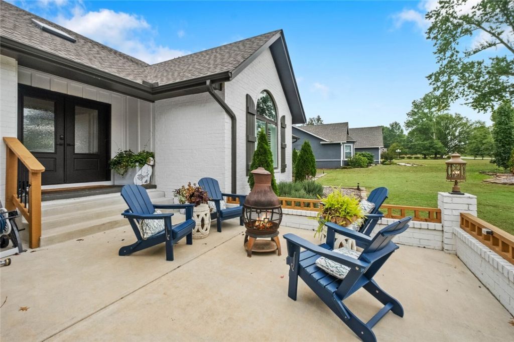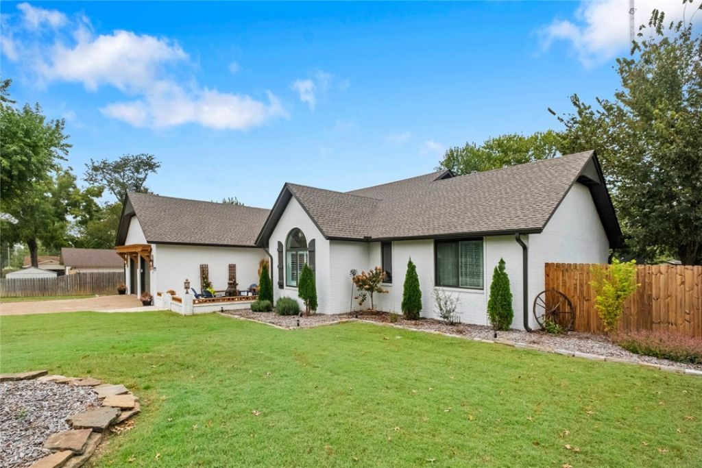 Luxury Redefined in Bentonville. Minutes to the Square, 8th Street Gateway Park, and the new Walmart campus. In a thriving neighborhood near top bike trails, this reimagined home pairs custom finishes with indoor?outdoor living. Bamboo floors and vaulted wood ceilings frame an open living area with a gas fireplace and artisan lighting. The chef's kitchen features marble counters, soft-close cabinets with pullouts, premium appliances, hidden walk-in pantry, and floor outlets. The dining room blends original charm?chandelier, French doors, arched window, built-ins, and plantation shutters. Split plan: two bedrooms and a skylit full bath with dual sinks, plus a new powder bath. Primary suite adds a window, spa shower with six heads, dual vanities, and a barn-door closet. Versatile bonus room, generous laundry room for 2 sets, drop zone, and more. Resort-style backyard with a covered deck with wood ceiling and shades, pool, play area, new landscaping, and privacy fence. UP TO $8,000 CREDIT WITH PREFERRED LENDER