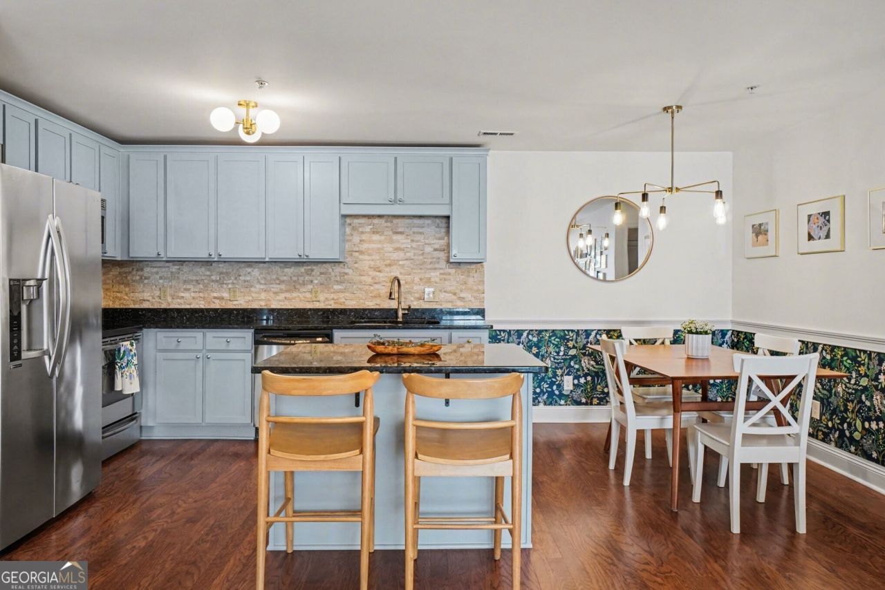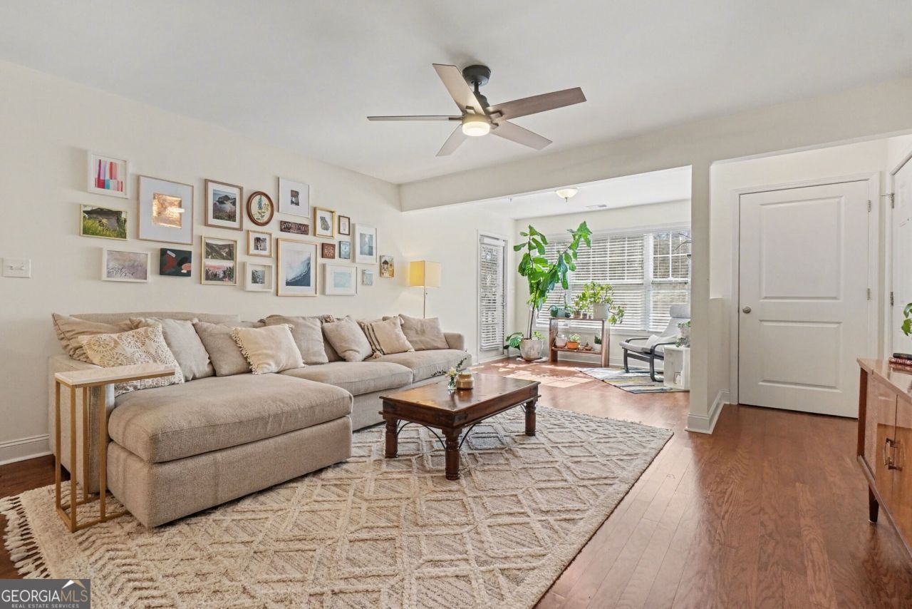 This condo complex is truly a Hidden Gem walkable to Downtown Smyrna and tucked among Beautiful Homes in a quiet, established neighborhood. Located in the Village Green swim community, residents enjoy a Pool, Fitness Center, Green Space that backs up to the Woods (perfect for pets), and a peaceful setting that feels tucked away while still close to everything. This Upper-Level unit (no one above you!) feels bright, open, and incredibly peaceful. There is so much Natural Light throughout, especially in the Sunroom the perfect Reading Nook, Home Office, or bonus Sitting Area. The Open-Concept layout flows beautifully with Hardwood Floors throughout the main living areas. The Updated Kitchen features Blue Cabinets, Granite Countertops, Stainless Steel Appliances, and a spacious Island with a Breakfast Nook. The Private Porch is charming and spacious ideal for morning coffee or relaxing spring and fall evenings. Two Bedrooms and Two Bathrooms. The Primary Suite is oversized with Vaulted Ceilings (top-floor perk!), a Walk-In Closet, and a beautifully updated Bath with a Separate Tub/Shower and great storage. One of the standout features of this home is the Abundant Storage including a Separate Laundry Room with additional Storage Space, an exterior Storage Closet, and Attic Access for even more flexibility. Storage like this is rare in condo living and truly sets this unit apart. Everything is in excellent condition and completely Move-In Ready. Location is fantastic just minutes to Smyrna Market Village, Truist Park, The Battery, local parks, restaurants, shops, the Smyrna Library, Community Center, Centennial Park, and major interstates. Families will also appreciate access to the Highly-Rated Cobb County School District, with Smyrna Elementary, Campbell Middle, and Campbell High offering sought-after Dual-Language Immersion Programs. Campbell Middle and Campbell High also feature the prestigious International Baccalaureate (IB) Programme a rare and impressive opportunity within the district. This is Low-Maintenance living with the perfect blend of Convenience, Comfort, and Style in one of Smyrna's most charming and walkable neighborhoods.