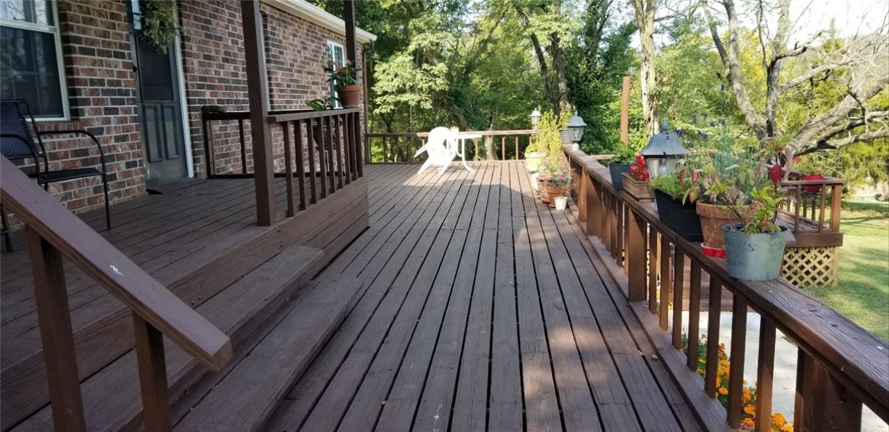 Beautifully updated, private, peaceful home on 4 acres. Great for home business, horses, gardening or city getaway. Home features huge sunroom, tongue-groove pine ceiling great room with large wall to wall brick wood burn fireplace, 2 living areas, 1 w/parquet wood, perfect for dancing! 4 beds or 3 beds/office. Fenced area w/arbor for entertaining. Formal dining & large laundry area. Newer roof, newer X-large 2 car garage. Well maintained home. Sunroom is 480 square feet.
