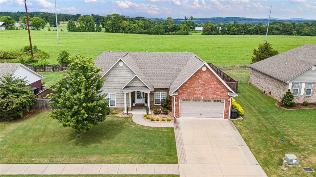 Welcome Home to Elegance and custom design over 2000 sq. Ft. Of heated and cooled space on a beautiful manicured lot in the city limits of Clarksville sets this-3 bedroom 2-full bath home. Largest suite has walk-in shower, separate tub and double sinks, and a walk-in closet. Tall ceilings, open floor plan, floor to ceiling windows and a corner gas log fireplace awaits you. Enjoy a MasterChef kitchen with granite countertops eat in kitchen also has a lovely island bar, All stainless steel appliances. There's a private sitting porch that is screened in overlooking your raised garden beds and secluded pasture land offering more privacy in your backyard. There is a 14 x 20 carport and a 12 x 20 out building with Electric H/A unit. Enjoy instant hot water with your recirculating system. There is also a pergola covered patio. The home is well insulated and has very low average utility bills. Large 2 car garage with extra storage. This beautiful home offers something for everyone in a great convent Location. Call today!