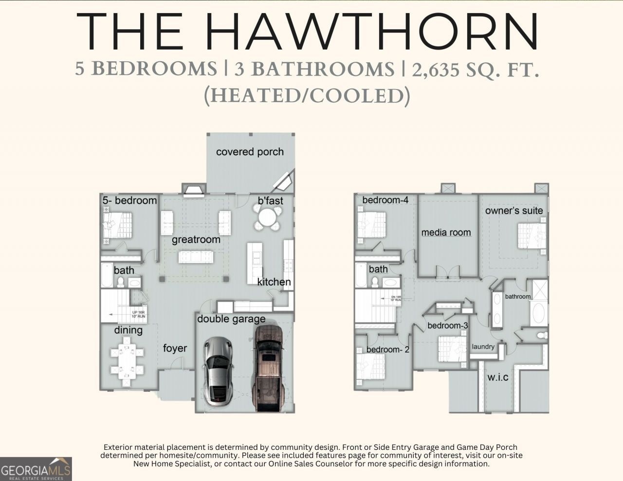 Discover Lake Forest, a charming Hughston Homes community nestled in Perry, GA, where comfort meets everyday luxury. Welcome to the Hawthorn B with 2,637 SF of thoughtfully designed living space. This versatile plan features a spacious Great Room, bright Kitchen with center island, Breakfast Area, 5 Bedrooms, 3 full Baths, Media Room, and a 2-Car Garage, complemented by our Social patio. A welcoming foyer leads to the formal dining room, enriched with detailed trim. The Great Room boasts coffered ceilings and a wood-burning fireplace, ideal for relaxing or hosting. The enriched Kitchen showcases an electric range and microhood granite countertops, tile backsplash, a walk-in pantry, and a large center island with sink and dishwasher. The main level includes a convenient guest bedroom and full bath. Upstairs opens to a spacious Media Room, your tucked-away second living space. The Owner's Suite includes a tray ceiling, abundant natural light, a Garden Tub, a shower, a double vanity with quartz, and a generous walk-in closet with a window for natural illumination. Additional bedrooms are bright and well-proportioned, with the laundry thoughtfully positioned near the bedrooms. Enjoy Luxury flooring that runs throughout the main living areas. 2 Car Garage & Our Covered Social Back Patio is Perfect for Outdoor Entertaining. This home blends modern comfort, smart design, and incredible value. Now is the perfect time to make your move and discover the charm of Lake Forest living.
