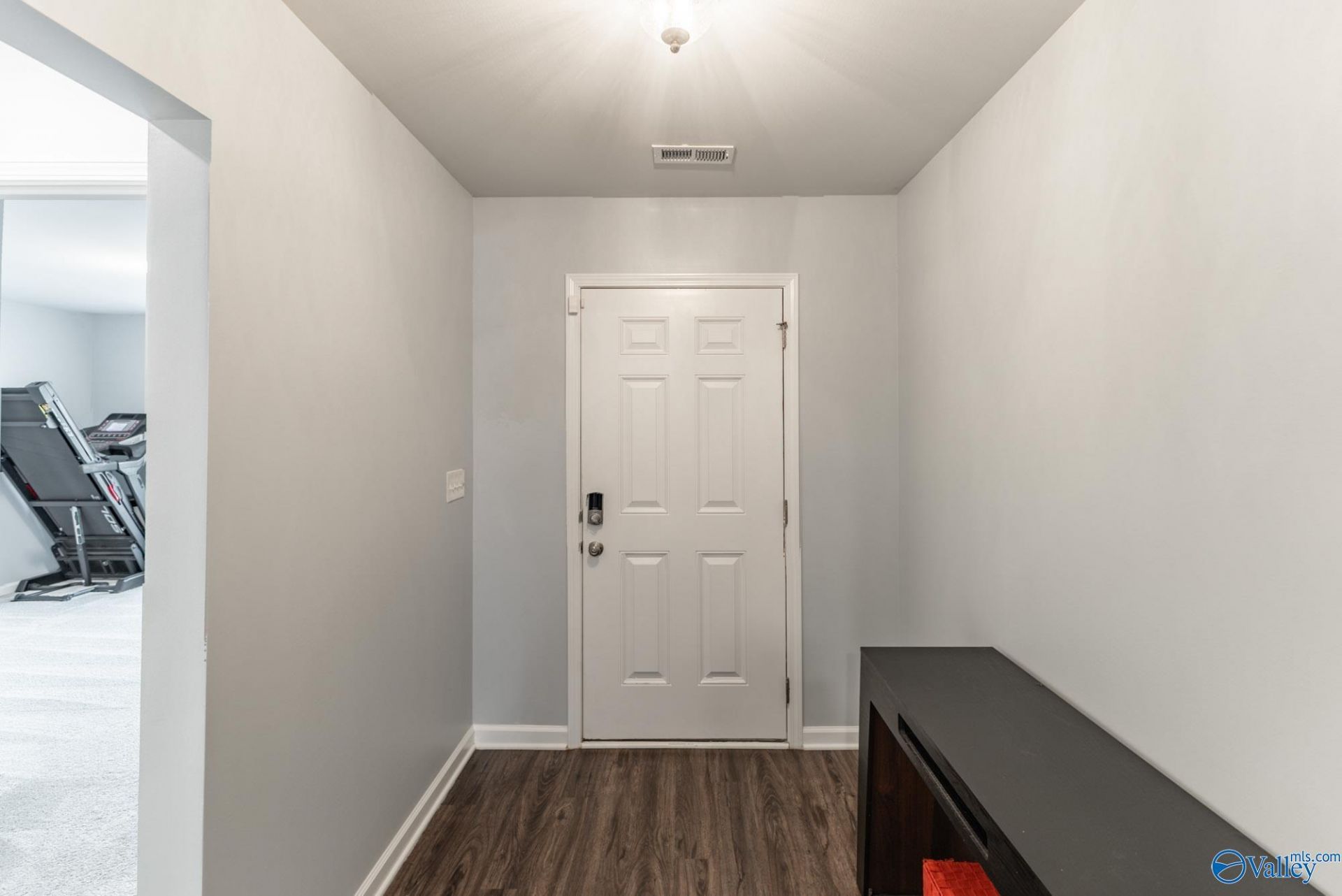 Designed for connection, built for everyday living. This 3 bedroom, 2 bath home offers 2,303 sq ft of open concept living with a seamless flow from the spacious family room to the kitchen and dining area, ideal for entertaining. The kitchen features granite countertops, tile backsplash, 30 inch gas range, and GE stainless steel appliances. Flex room for office or formal dining, plus drop zone cubby. Oversized primary suite with glamour bath, garden tub, double vanity, and large closet with laundry access. Full brick home with covered patios and sprinkler system. Located in growing Hazel Green near Highway 231/431 with easy access to Huntsville and Redstone Arsenal.