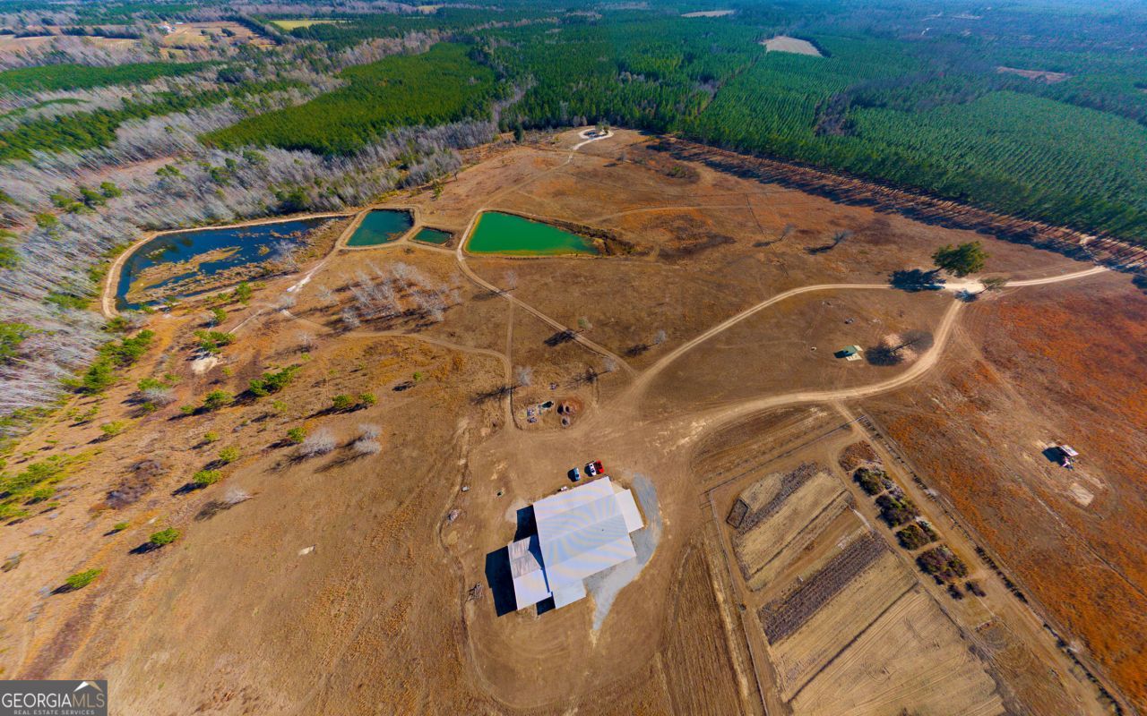 This beautiful oasis is located on 124 private acres. Take in the beautiful meadows as you drive down the long country driveway. Home has covered porches to take in the views and wildlife. There are four chains of ponds stocked with fish. This property is surrounded by planted pines and wooded wetlands. It has multiple usable wells and septic tanks on property. There is 3,840 heated square feet along with 2 workshops. There is sufficient covered storage area for RVs, boats, or equipment. One shop has 3 bay doors and an unfinished loft - electrical is prewired; the other shop has 2 bay doors. In the back of the structure, you will find a man-cave that is perfect for entertaining! Upstairs, in the main living area, are 2 bedrooms, laundry room, and a full bathroom. Downstairs is the master bed and bath, kitchen and family room that leads into the first shop.