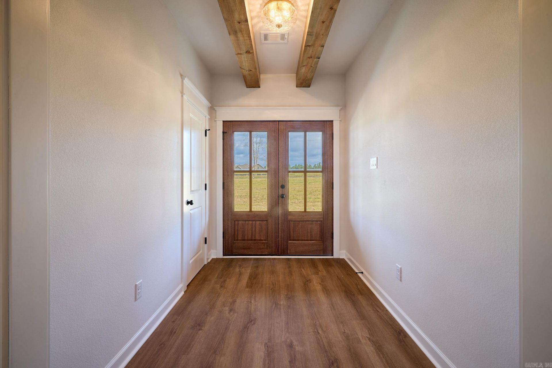New construction in a growing area of Bauxite featuring 3 bedrooms, 2 bathrooms, and 2,217 sq ft. You???re greeted by a large front porch with double front doors and a side-load garage. This open-concept home offers a vaulted, beamed living room ceiling with a woodburning fireplace, hardwood floors in the main living area, carpeted bedrooms, and tile in wet areas. The kitchen includes quartz countertops and a walk-in pantry. Just off the foyer is a versatile office or dining room with a closet. The primary suite features a soaking tub, walk-in shower, double vanity, and private water closet. Additional highlights include a mudroom, a separate laundry room with sink and folding area, and a spacious backyard.