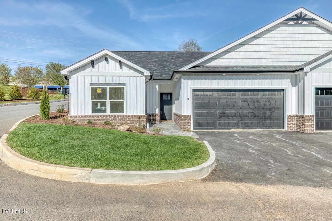 New construction! One level living with many custom details from the moment you arrive. Stamped concrete welcomes you to Unit 17! Inside you'll find details like wainscoting, tray ceilings, vaulted living room with brick fireplace and gas logs, beautiful kitchen with granite countertops, stainless appliances, and dining room which leads to large covered patio. The primary bedroom has a feature wall and tray ceiling. The primary bath has a double vanity, tiled shower and large walk in closet. For added convenience, the primary bath joins the laundry room. Two additional bedrooms share a hall bath. Tankless hot water heater, 2 car garage and much more. $150 per month HOA fee covers the common areas, including lawn maintenance and future garbage. Excellent location just 8/10 mile from I-26, in North Johnson City off Boones Creek Road. One year builder's warranty. Owner is a relative.