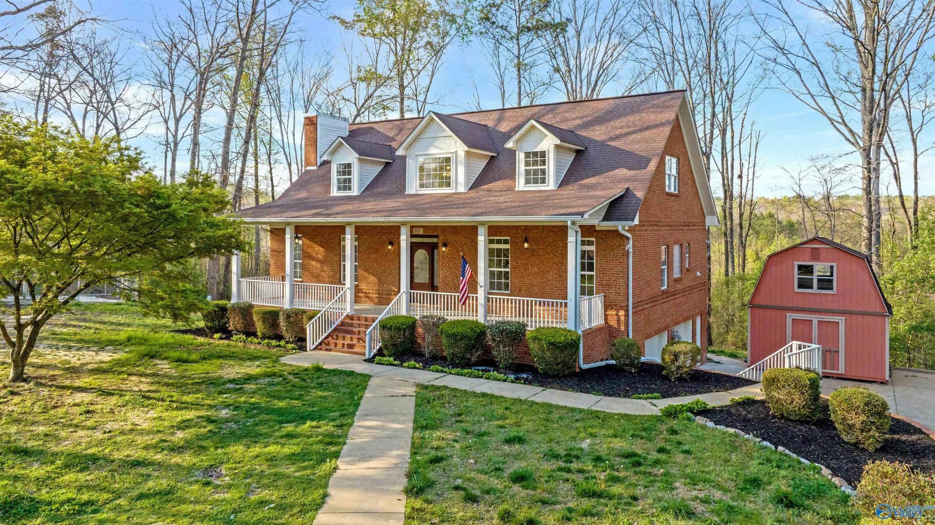 BEAUTIFUL SETTING for this Rainsville two story home with main level master suite. Nestled on a dead end road with a huge front porch for summertime sitting. Home features 3 bedrooms, 2.5 bathrooms, open concept, kitchen island and pantry, granite countertops, fireplace, basement has a finished room for an office or mancave, extra large laundry room with space for a work area. Detached building with loft and window unit. Concrete circle drive and creek at the back of the property.