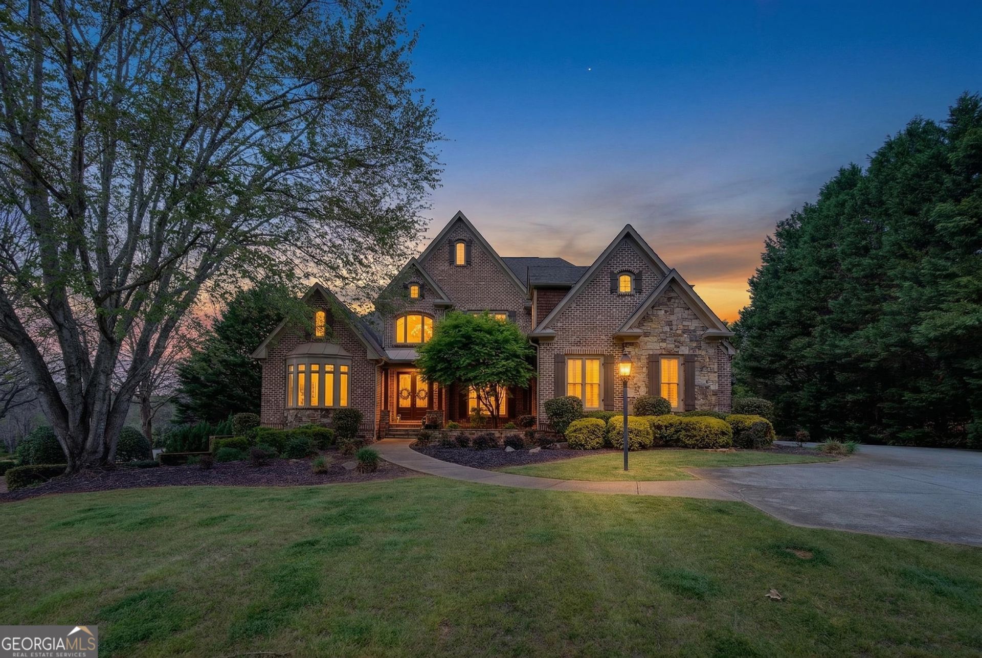 Welcome to prestigious Old Waverly. This home was constructed in 2004, situated on a private 1.04-acre lot and spans almost 5983 sq ft. with 6 bedrooms, 4 full bath and 2 half baths. This elegant brick and stone residence features a thoughtfully designed layout with an open and inviting floor plan. The main level is highlighted by a grand two-story foyer and a dramatic two-story great room with a wall of windows that floods the home with natural light. Notable interior features include a formal dining room, a wood-paneled home office with a fireplace, and a gourmet kitchen equipped with quartz countertops, professional-grade stainless steel appliances, a 48 inch gas ranch with double ovens, and a pot filler. The kitchen flows into a vaulted keeping room anchored by another fireplace. The spacious primary suite is located on the main level, offering hardwood floors, a private sitting area with its own fireplace, direct deck access, and a spa-inspired bath with a massive walk-in closet. The upper level provides 3 bedrooms, one with an en suite and the other 2 sharing a spacious Jack and Jill bath. The basement is fully finished with a massive bar area, area for ping pong and pool, half bath, kitchen and 2 guest room that share a full bath. One guest room is currently used as a theater. There is also a half bath for guests and several storage rooms in the basement. The exterior features a three-car attached garage and a quiet, wooded backyard on a corner lot. The outside is made for entertaining! There is a back deck off the main level and a covered porch off the daylight basement. The yard features a fire pit and a poured basketball court. There is definitely room for a pool in this backyard! This home is zoned for North Oconee School District. Come see this Oconee Beauty today!