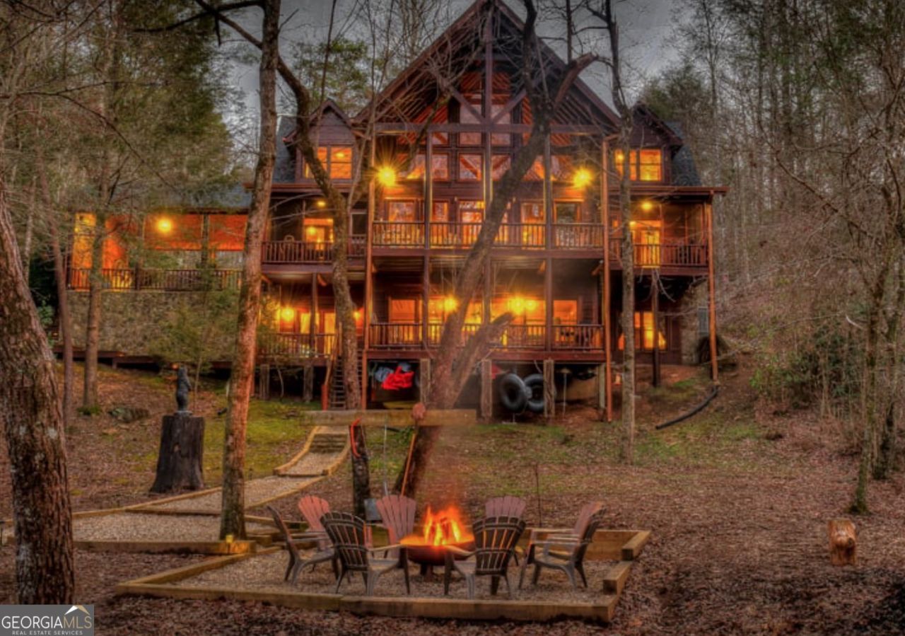 Welcome to your private sanctuary on the banks of the renowned Fightingtown Creek-a custom-built, entertainer's dream offering the perfect blend of rustic elegance and refined comfort. Nestled in the heart of nature yet just minutes from downtown Blue Ridge and McCaysville, this exceptional estate is a rare opportunity to own a true creekfront masterpiece. Boasting over 4,600 square feet of meticulously designed interior living space and an additional 1,300+ square feet of covered outdoor porches and decks, this 5-bedroom, 3.5-bath luxury cabin offers the ideal setting for hosting family, friends, or executive retreats. Step inside to soaring cathedral ceilings and a grand open-concept living area anchored by an impressive stone fireplace and chef's kitchen outfitted with custom cabinetry, ample storage, and spacious prep areas-perfect for gatherings both intimate and large. The dining area easily accommodates 12+ guests, creating a seamless space for entertaining. The main-level primary suite features a serene, private screened-in porch-perfect for savoring your morning coffee to the sounds of the rushing creek or enjoying an evening glass of wine in peaceful solitude. The ensuite bath showcases custom stonework, a spa-inspired walk-in shower, and handicap-accessible features for convenience without compromising luxury. All four guest bedrooms are oversized with walk-in closets, providing ample space and privacy for your visitors. The fully finished terrace level offers a cozy second living area, additional guest accommodations, and generous space for games, puzzles, or quiet relaxation after a day exploring the mountains. Step outside to multiple covered porches and decks on both levels that bring the outdoors in-perfect for dining al fresco, listening to the sounds of nature, or simply unwinding by the creek. Currently enrolled in a successful luxury rental program, this cabin also offers excellent investment potential with a proven rental history. Whether you plan to use for your personal enjoyment or enjoy the investment income, this cabin is selling fully furnished. This is truly a turn-key asset that will be ready use on day one! OPEN HOUSE SUNDAY APRIL 12TH 1-3PM