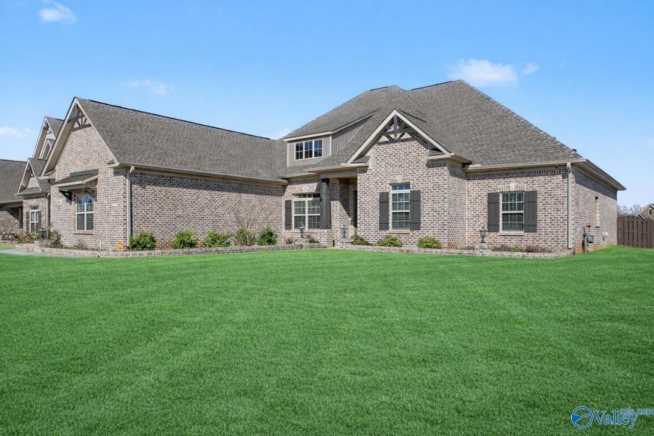 Beautiful 4BR home with bonus room featuring hardwood floors, Craftsman trim, shiplap accents, stained dining beams, and two gas fireplaces. The gourmet kitchen offers a gas cooktop with decorative wood vent hood, double ovens, granite countertops, Magnolia cabinetry, and under-cabinet lighting. The owner's suite boasts a shiplap trey ceiling and spa-like bath with zero-entry tile shower and freestanding tub. Enjoy the covered veranda with outdoor fireplace. Located in Meridianville, Includes Alexandria double wood door, cedar columns, metal roof accents, Rinnai tankless water heater. Conveniently located to Redstone Arsenal and 15?20 minutes to downtown Huntsville.