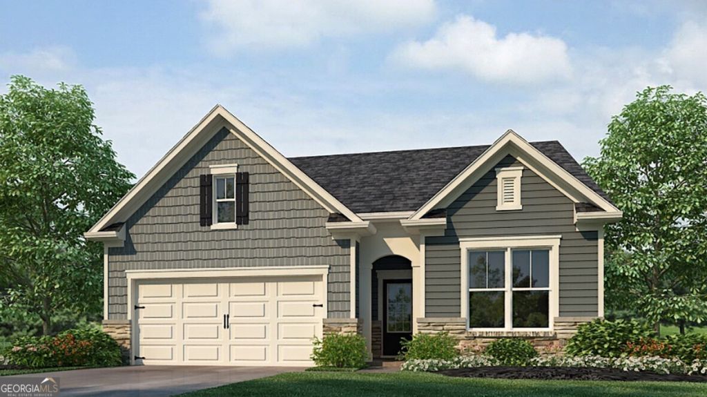 Enjoy the Aria, an open living in this ranch style home on lot 281 at 11 Majestic Oak Circle in Dallas, GA at the Lost Creek community located in popular North Paulding school district. The Aria floor plan features 3 bedrooms and 2 bathrooms in 1618 square feet along with a 2-car garage with shake and stack-stone water table. The front hallway leads you into the open-concept kitchen and living room. The kitchen boasts white cabinets, white granite, white tiled backsplash and stainless-steel appliances. Step from the kitchen into the cozy living room--perfect for gathering with family and friends. The primary suite with en suite bathroom features a separate walk-in shower, soaking tub, water closet and dual vanity. On the other side of the home, the additional 3 bedrooms and easy access to the 2nd bathroom. Members of the Lost Creek community will enjoy the amenities located at the Edenwood community right next door. Including a triple pool water park, junior Olympic pool, zero entry pool for children, tennis courts, a playground and a clubhouse. Come out today to Lost Creek to view your new home at 11 Majestic Oak Circle.