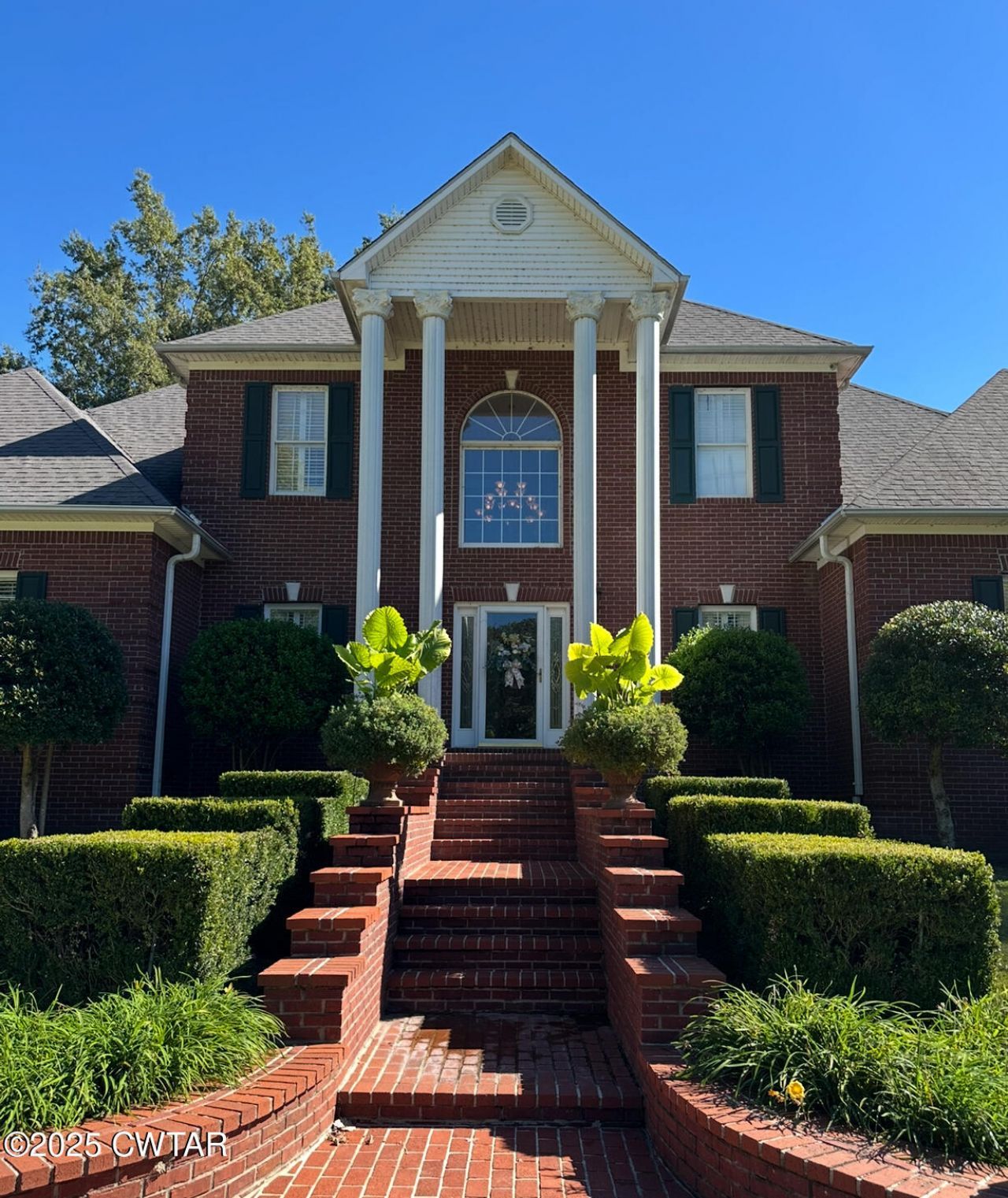 This elegant residence boasts a thoughtful layout across two floors. The grand entryway features a striking staircase with wooden steps and wrought iron railings, leading to the upper level. The home's interior is adorned with rich wood furnishings, ornate rugs, and carefully curated artwork, creating a warm and sophisticated ambiance. The spacious kitchen showcases white cabinetry, granite countertops, and a decorative tile backsplash. Bedrooms are well-appointed, with the primary suite spanning 330 sq. ft. The office space offers ample natural light. Throughout the home, large windows and arched doorways contribute to an open, airy feel, while crown molding and wainscoting add refined architectural details. Spacious 4-bedroom, 5-bathroom home in Dyersburg, TN, featuring 4023 sq. ft. over 2 floors. Includes office, dining room, laundry, and combined kitchen/living area. Grand staircase and high ceilings create an impressive entryway.