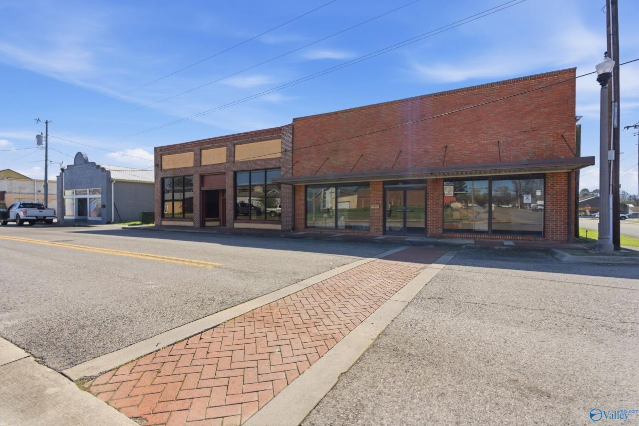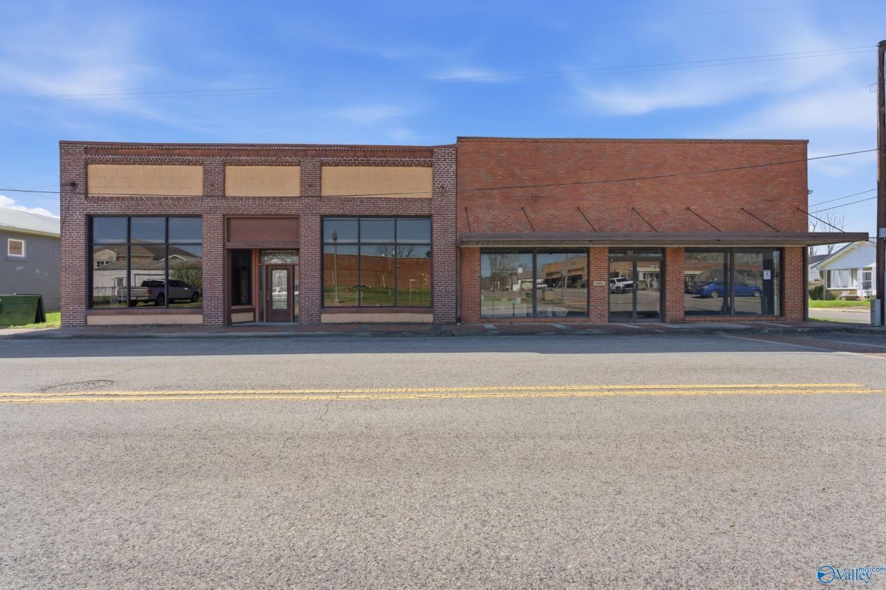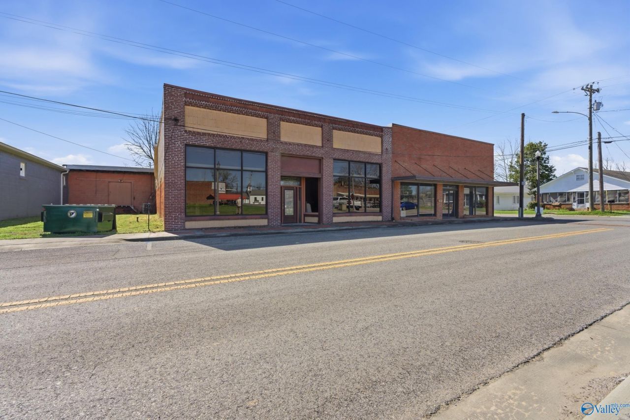 Commercial Building at 6490 SF with separate 24'X26' garage. Building can be easily separated into two different 3000 SF+ businesses. Also, grass area 23' X 65' front left of building that can be used for parking or outside business use. Garage can be used for storage or set-up for business use, grass area back side of garage on Blountsville Street 26' X 77' which can also be used as parking or business use. Currently there is a loft built on the bay area. Storage area or business use rear bay behind two front bays