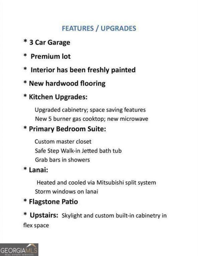 Rare 3-Car garage meets upscale Lock-and-Go living.PRE APPRAISED. Experience the ultimate in Active Adult 55+ living in this meticulously maintained, freshly painted Ansley plan. Well situated on a premium and private lot, this residence features the community's unicorn: a spacious 3-car garage-ideal for the car enthusiast, a hobbyist/workshop, fitness equipment, or significant extra storage. MAIN LEVEL luxury with open-concept living. Gleaming hardwoods throughout the foyer, office, and primary suite. The vaulted family room, anchored by custom bookcases and a gas log fireplace flows seamlessly to the dining area and the gourmet kitchen featuring gorgeous stained cabinetry and brand-new gas cooktop and microwave. Primary suite is a true sanctuary with a spa-like bathroom, double granite vanities, linen tower, and a Safe Step jetted tub for therapeutic soaking. Huge walk-in custom closet. UPSTAIRS features an expansive, private retreat for visitors, complete with a large sitting area, office alcove, private full bath and abundant storage. Flex Space/occasional bedroom with skylight and built-in storage is perfect for a hobby room, or grandkid-ready play zone. For year-round enjoyment, retreat to the heated and cooled Sunroom/Lanai, offering a stacked stone fireplace and a serene view of your private lot. Flagstone patio is perfect for BBQ and outdoor dining. Enjoy a true lock-and-go lifestyle where the exterior yard maintenance is handled by the HOA! This leaves you free to enjoy resort-style amenities: pickleball, tennis, a community garden, nature trail, clubhouse, free library, pool, and a fitness center. Whether it's a planned clubhouse activity or a spontaneous neighborhood gathering, your social calendar will be as full as you want it to be. Community is GATED and FENCED. Brookhaven at Johns Creek is convenient to shopping, entertainment, hospital/medical facilities, multiple public and private golf courses, restaurants, and parks. COMING SOON TO JOHNS CREEK! Multi-BILLION DOLLAR Johns Creek Town Center, Medley and Creekside Park.