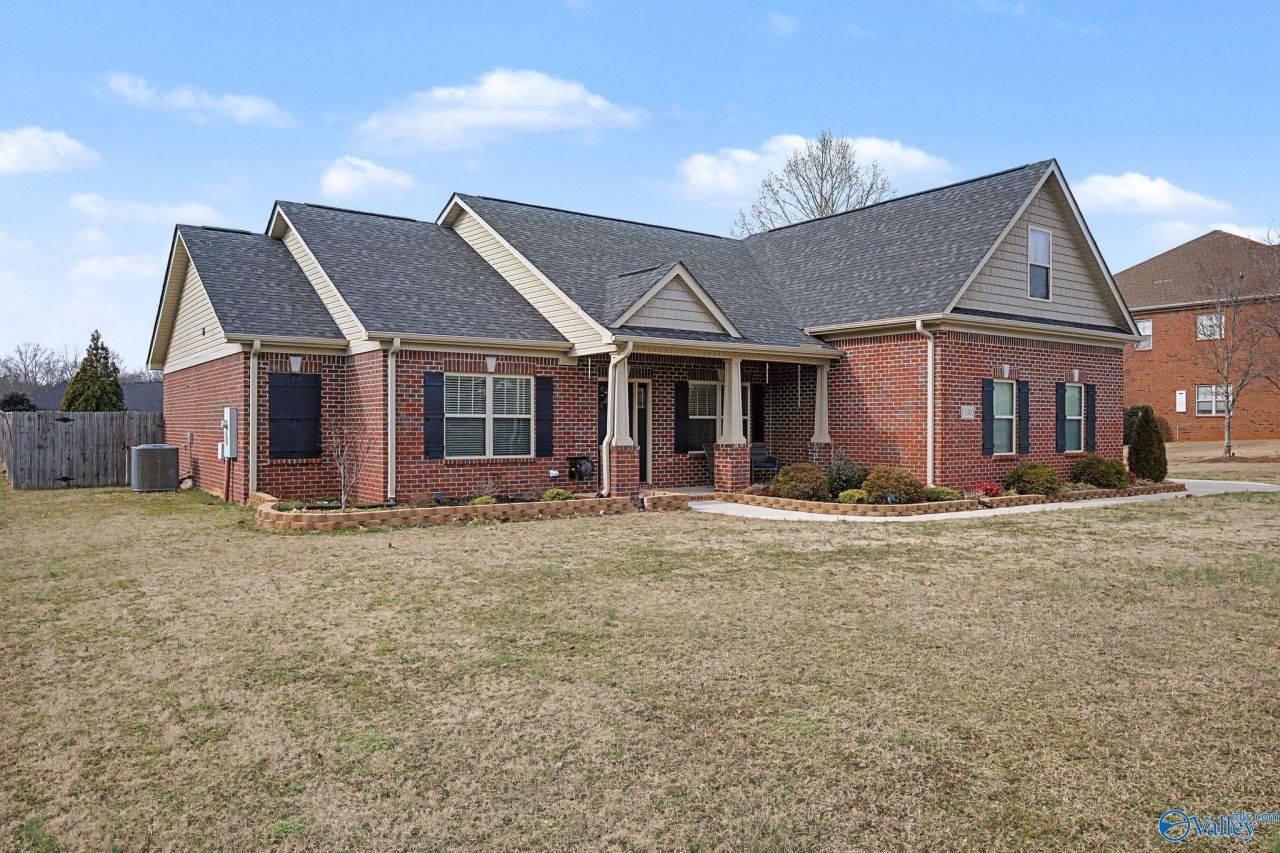 NO HOA-JAMES CLEMENS HS- 0.60 LOT!!! Beautifully maintained 3 bedroom 2 bath brick home sits on a spacious .60 acre lot in the highly sought after Madison City School District. Featuring 9-foot ceilings throughout, the home offers an open, airy feel with plenty of natural light and fresh paint in the main living areas. The flexible bonus room provides the perfect space for a home office, playroom, or media room. Enjoy outdoor living with a covered back porch, additional patio space, and a fully fenced backyard---ideal for entertaining, pets, or relaxing evenings. With no HOA, a large lot, and classic brick construction, this home combines comfort and privacy in a prime location.