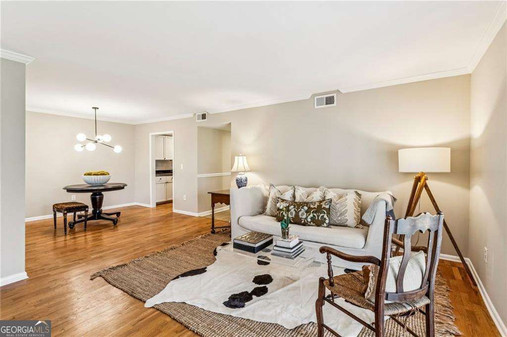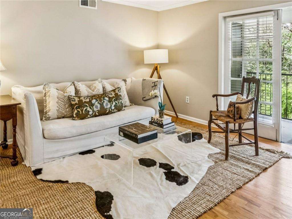 Rare 2-bedroom condo with two private, elevated balconies & street-level entry, Primary on Main level (no stairs), in Atlanta's Upper Westside-minutes to The Works, The BeltLine, Georgia Tech, and Piedmont Hospital. This light-filled, open-concept home offers hardwood flooring, designer lighting, french doors & seamless indoor-outdoor living with a private balcony overlooking peaceful, wooded & open green space. The kitchen features stone countertops, stainless steel appliances, & a clean tile backsplash for a modern, functional layout. The primary suite features direct access to a second private balcony through French doors, updated LVP flooring, a walk-in closet with shelving system, and a refreshed bath with an oversized vanity. The 2nd bedroom also features a walk-in closet, and the full hall bath has been updated with modern finishes. A separate laundry closet, and an oversized linen closet are conveniently located in the hallway, providing additional storage & functionality. With freshly painted walls and trim throughout, updated lighting, fixtures, and hardware, this unit is ideally positioned near a gated entrance and mailboxes for added convenience. Collier Green offers resort-style amenities including a pool, fitness center & clubhouse, beach volleyball court, dog park, car wash area, plenty of parking & expansive green space. Located in one of Atlanta's most sought-after in-town areas with quick access to I-75, Piedmont Hospital and Georgia Tech, West Midtown, Atlantic Station, Midtown & other major employment centers. Atlanta Public Schools ~ incl. Morris Brandon Elem., Sutton Middle, and North Atlanta High. Enjoy an unbeatable Upper Westside lifestyle with close proximity to Westside Park, Tanyard Creek Park, Bobby Jones Golf Course, the BeltLine, top restaurants, breweries, fitness studios, and shopping along the Howell Mill corridor. Ideal for a low-maintenance primary residence or in-town condo with exceptional access to Atlanta's top destinations and everyday conveniences. HOA dues can be paid Annually or Monthly. Annual fee is shown. FHA-approved community.