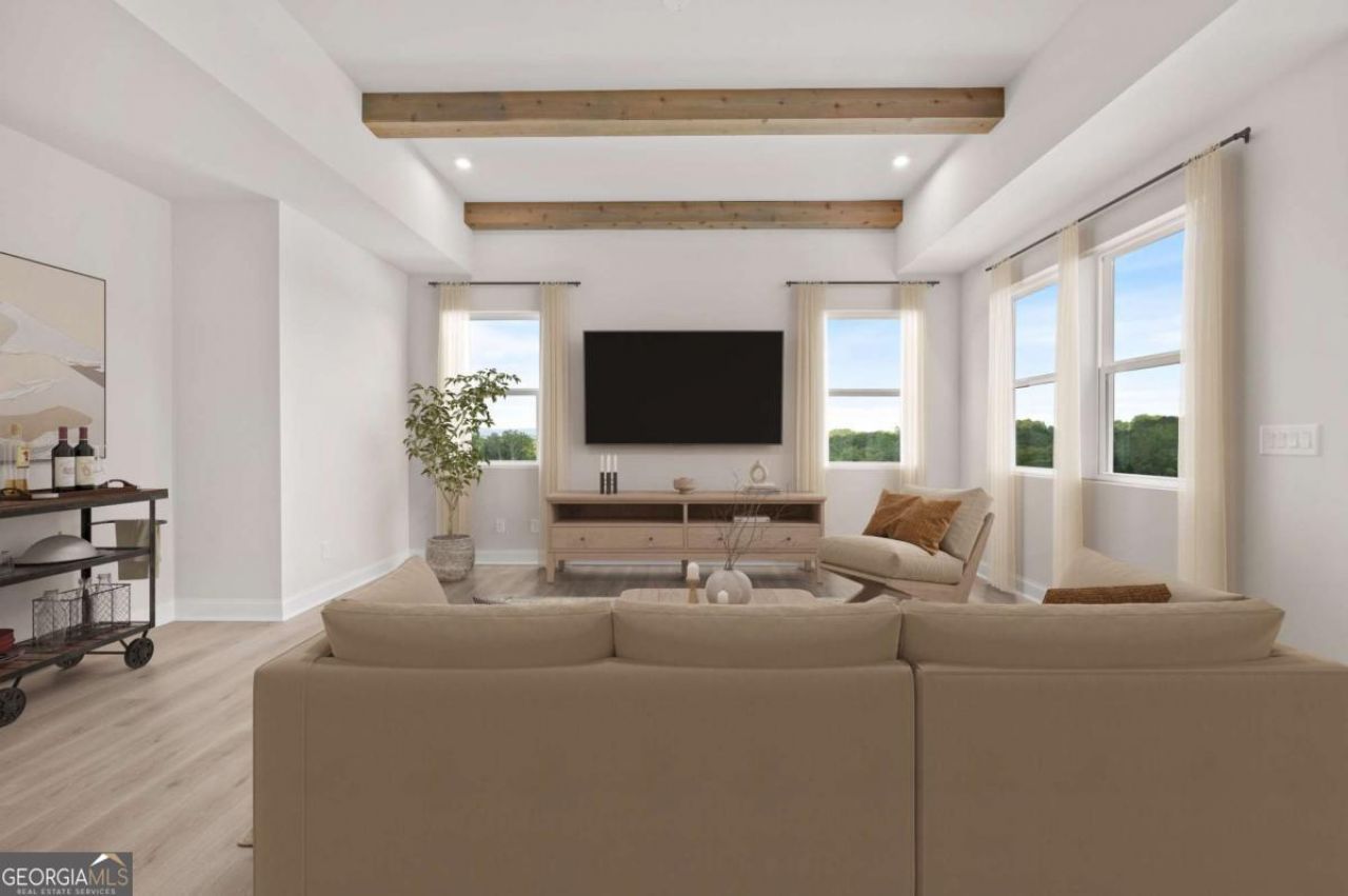 Welcome to The Brookwood, a charming single-family ranch style home located in our vibrant 55+ community of Gatherings at GreenHouse in Marietta, built by Beazer Homes. This beautifully maintained residence features 4 bedrooms and 3 baths, offering a perfect blend of comfort and convenience. With 2425 sq ft of living space, the open-concept layout includes a bright and airy great room, a modern kitchen with a massive island, stainless steel appliances, quartz countertops and a dining area ideal for both casual meals and entertaining. The primary suite has a luxurious en-suite bathroom with a large shower. two additional bedrooms on main level, perfect for guests or a home office. Additional Retreat on 2nd level with Private 3rd bedroom, bath and game room/loft. Step outside to enjoy the covered patio, providing a wonderful space for relaxation and outdoor activities. Additional highlights include 2 car attached garage with an EV charger Residents of GreenHouse will enjoy resort style amenities: large pool with lap lanes, pickleball, bocce ball courts, spacious fitness center with yoga studio, scenic 3 hole putting green, pet spa, indoor and outdoor gathering spaces. The home is conveniently located near world class shopping, restaurants and more - short distance to I-75 and 575, making it an excellent choice for those seeking a vibrant and engaging lifestyle. Beazer Homes is proud to be America's #1 Energy-Efficient homebuilder. Our homes have will have net HERS score 5 (and solar) with the lowest publicly reported scores among the top 30 U.S. homebuilders identified by Builder Magazine's Top 100 list. Take advantage of our special buyer incentives which may include closing costs, design studio upgrades, FLEX dollars, and more. Contact us today to learn more about how you can benefit from these exclusive offers. Photos and Renderings are the Brookwood floor plan. Photos represent a previously completed home and are not the subject.
