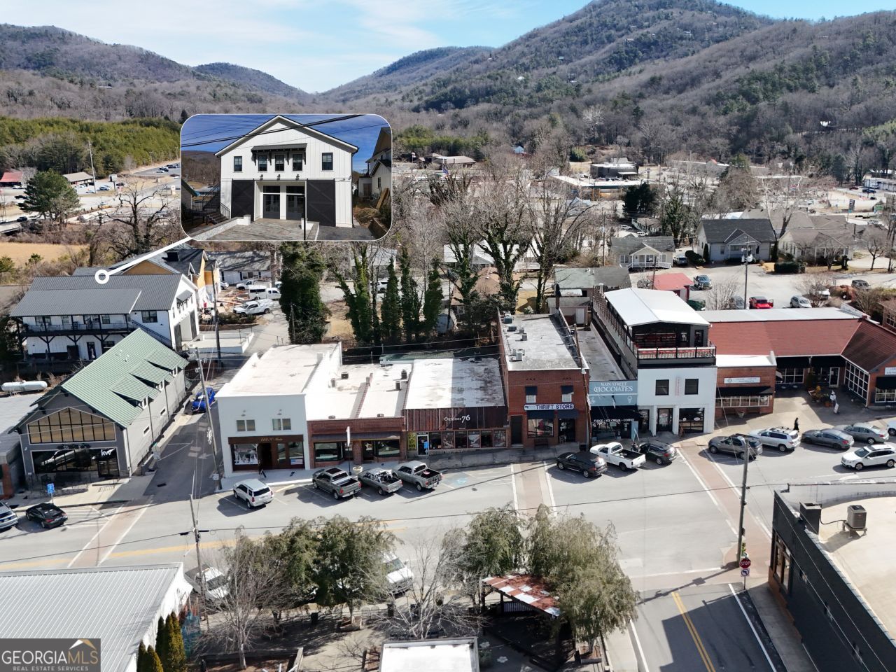 Exceptional opportunity in the heart of downtown Clayton, Georgia's thriving and walkable business district. Perfectly positioned among popular shops, restaurants, and attractions, this beautifully designed two-story farmhouse-style building blends strong income potential with mountain-town charm. The main level features approximately 2,200-2,500 square feet of versatile commercial space, easily adaptable for restaurant, event, or office use. The open layout offers tremendous flexibility and includes prep space and access to a partially covered deck, creating endless possibilities for retail, dining, or entertainment concepts. Above, three well-appointed 1BR/1BA loft-style apartments-each approximately 750-850 square feet-are operated as highly successful short-term vacation rentals with a busy and growing occupancy rate. These open-concept units feature full kitchens, laundry, private exterior access, individual HVAC systems, and stylish farmhouse finishes that have earned consistent 5-star guest reviews. Whether maintained as a thriving mixed-use investment, reimagined as office space with residential units, or adapted to suit a new vision, this property offers incredible flexibility in one of North Georgia's most desirable mountain destinations. An outstanding investment opportunity in a rapidly growing area-this is truly a must-see.
