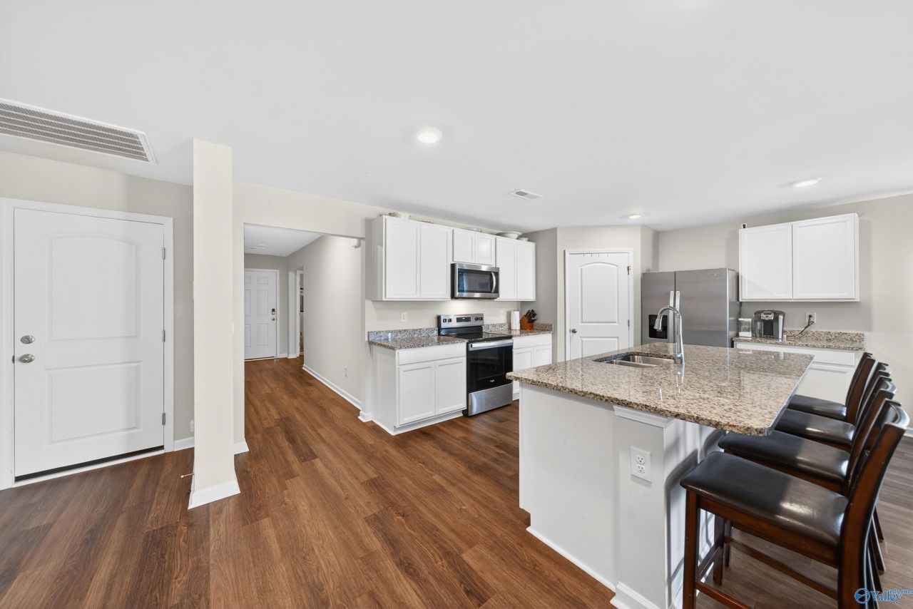 Beautifully maintained 5 bedroom 3 bath brick home in Athens designed for modern living and everyday comfort. The open concept floor plan connects a bright living area with luxury vinyl plank flooring to a spacious kitchen featuring granite countertops, stainless steel appliances, and smart home technology that keeps life simple and connected. The primary suite feels like a private retreat with quartz countertops, a double vanity, and a step in shower. Four additional bedrooms offer flexibility for family, guests, or a home office. Outside, a fully sodded yard and covered patio create an inviting space for morning coffee or weekend gatherings. This home combines style and convenience.