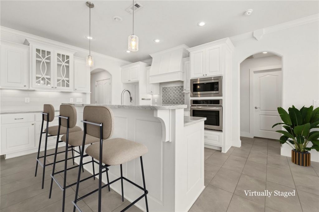 This beautiful 4-bedroom, 3-bath home offers a split floor plan and spacious open-concept living. A welcoming front porch invites you into the home where an expansive living room flows into the kitchen, creating an ideal setting for everyday living. The kitchen features beautiful cabinet detailing, ample storage, an island bar area for additional seating, and stainless steel appliances. Privately situated, the large primary suite serves as a relaxing retreat with dual sinks, a tiled walk-in shower, and an oversized walk-in closet. Three additional bedrooms provide space for the whole family, an office, or guests. A backyard patio is perfect for quiet evenings or hosting friends and overlooks a well-landscaped lawn, complete with an automatic sprinkler system for easy maintenance. The home features a 3-car garage with an Atlas safe room tornado shelter for added peace of mind. Located near the Quail Hollow neighborhood amenities, this home is the perfect blend of functionality and comfort.