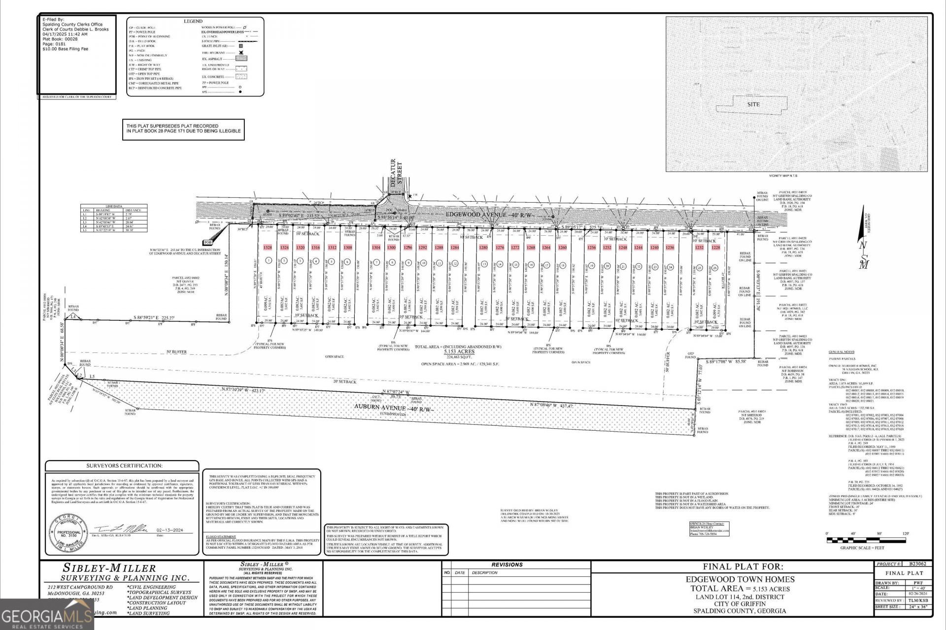 26 lots centrally located between downtown Griffin, and Hwy 19/41. Platted for 26 townhomes. Sewer available.