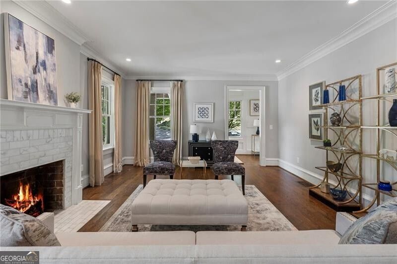 Incredible opportunity for the savvy buyer! Exquisitely renovated and expanded in 2017, this exceptional Ansley Park residence sits on a premier corner lot at 17th Street and Peachtree Circle. Designed by Stainback-Hess Studio and built by Horner Homes, with landscapes by Jay Winters of Elatum Designs, the home blends timeless architectural character with refined modern living. A gracious foyer opens to elegant formal living and dining rooms, featuring fireplaces, detailed moldings, and French doors ideal for entertaining. The chef's kitchen flows seamlessly into a dramatic two-story vaulted family room with wood-burning fireplace. A music room or study with built-ins and garden views completes the main level. Upstairs, the luxurious primary suite offers a spa-like bath and walk-in closet, accompanied by three additional ensuite bedrooms, a laundry room, and a fully floored attic with permanent stairs. The terrace level includes a bedroom, full bath, living area, gym, and extensive storage. A separate two-bedroom, one-bath in-law or nanny suite is located above the attached two-car garage. Additional features include abundant natural light, front and rear staircases, hardwood floors throughout, gas lanterns, gated off-street parking, dog run, and multiple outdoor entertaining spaces with stunning city views. Walkable to Piedmont Park, the Beltline, Colony Square, Arts Center MARTA, and all of Midtown. A rare opportunity to own a truly distinguished home in one of Atlanta's most coveted in-town neighborhoods. Note: Terrace level exceeds 2,000 sq ft and is not included in FMLS total square footage.