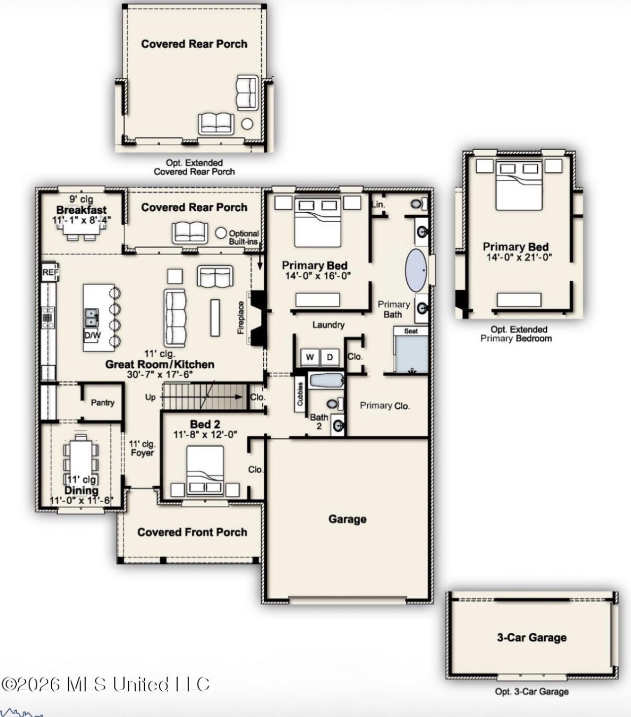 The Willow offers timeless Craftsman or Traditional curb appeal with a modern, open layout. Enjoy a spacious kitchen that offers a 5 burner gas cooktop, double oven and microwave. You will love the great room with breakfast bar seating, plus a formal dining room and sunny breakfast area.The main-level owner's suite features a luxury bath with oversized tiled shower, soaking tub, and split vanities. A second bedroom and full bath downstairs are perfect for guests or a home office.Upstairs includes 3 bedrooms, a full bath, and a large bonus room--plenty of space for everyone.Options available on presale to expand the owner's suite and covered patio.