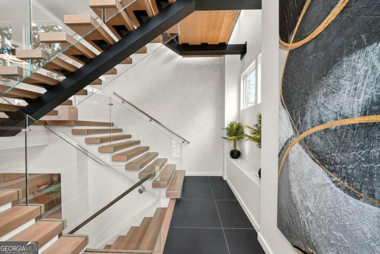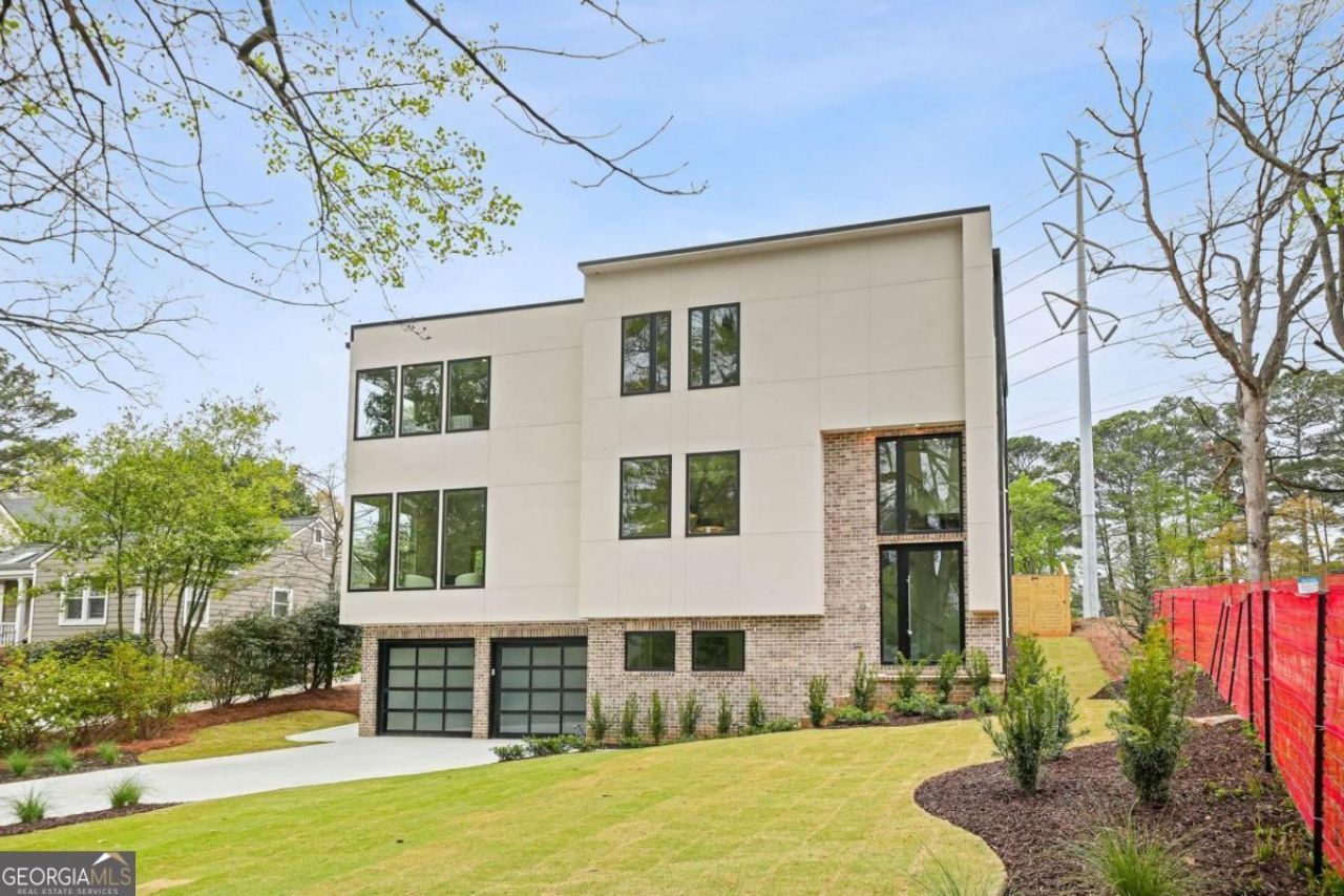 A rare architectural statement, this striking modern residence masterfully blends clean horizontal lines, expansive floor-to-ceiling glazing, and a bold geometric footprint engineered to maximize natural light and effortless flow. Refined and disciplined on the exterior. Dynamic and alive within. At the heart of the home, an expansive open-concept layout is intentionally designed for the way people actually live. A dramatic central island anchors the chef's kitchen, seamlessly connecting living and dining spaces that shift effortlessly from formal entertaining to casual lounging to immersive media living. Circulation flows naturally around the core stair and kitchen spine structured, yet never closed. The sculptural floating staircase, inspired by M.C. Escher, serves as both architectural centerpiece and functional art. Cantilevered treads and open sightlines invite light to travel freely through the home, reinforcing a commitment to transparency and modern design at every turn. The culinary suite features Thermador ovens, microwave and wine unit; Sub-Zero refrigeration; Wolf gas cooktop; and Miele dishwasher, with additional Thermador refrigeration and dishwasher in the dedicated appliance pantry. European cabinetry runs throughout, with embossed leather cabinetry elevating the primary bath. An integrated interior and exterior surround sound system completes the experience. Situated in the highly sought-after LaVista Park community, this residence offers exceptional convenience just minutes from Emory University and the Centers for Disease Control and Prevention, with easy access to Children's Healthcare of Atlanta. Commuting is effortless with nearby access to the MARTA Lindbergh station and major thoroughfares including Interstate 85 and Briarcliff Road. Buckhead is just 10 minutes away, placing premier dining, shopping, and entertainment within easy reach. Steps from Life Time Fitness in one of Atlanta's most prestigious enclaves, the builder owns both adjacent homes offering exceptional privacy and future potential. Architectural plans available. This is more than a home. It is a living work of art.