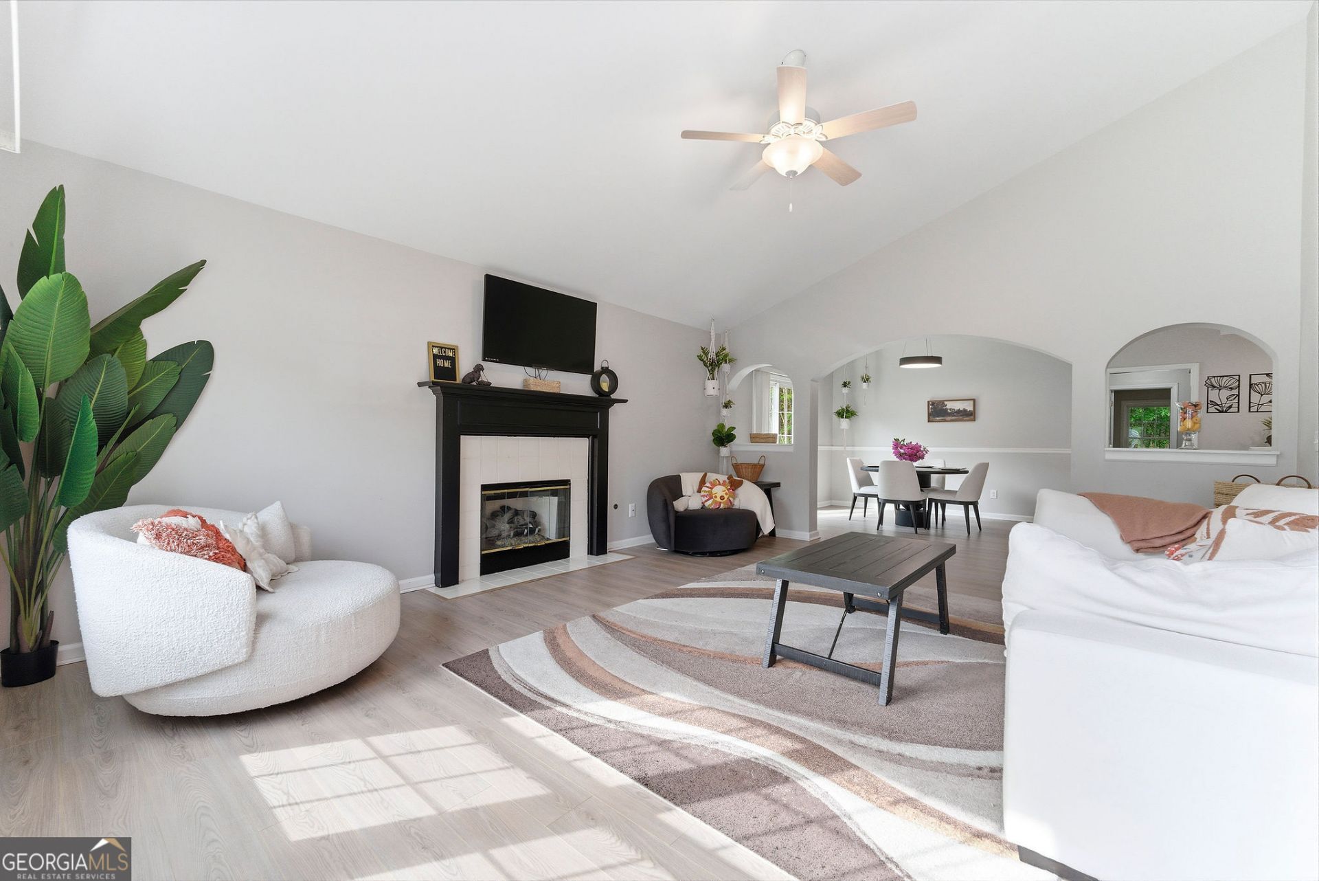 PERFECT Home for the first time homebuyer or someone wishing to downsize. This 2 bedroom 2 full bath home features LVP flooring throughout the home. One of the larger floor plans in the neighborhood. Bathrooms have been updated with tile floors, newer lighting and fixtures. Large family room with vaulted ceilings features a fireplace. Open to Dining room with plenty of room for a larger table. Kitchen features eat at bar and white cabinets. Primary ensuite bath with walk in shower and double sinks. Stepping outside the courtyard is a patio for entertaining. Home is all one level and has a level driveway and yard. Close to shopping and dining and in the popular Towne Lake Area. Only minutes to all the activities in Downtown Woodstock, Outlet Mall and Lake Allatoona.