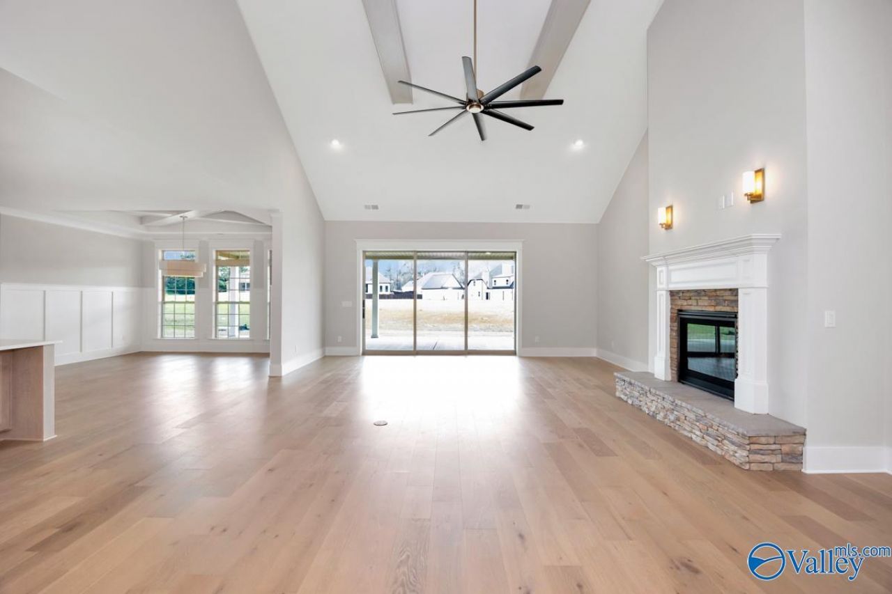 Move in ready! Exquisite! This luxury Taylor plan combines single level living with modern design. The vaulted great room with pocket slider to huge covered veranda flows seamlessly into the chef's kitchen with top tier appliances and a prep kitchen for effortless entertaining. The primary suite boasts double walk in closets with wood shelving, spa like luxury bath, and ample room for a sitting area. 3 additional bedrooms plus an office gives you all the space you need! Bellawoods is Madison's premier neighborhood. Featuring resort style amenities with a clubhouse, pool, paved walking trails, and fishing ponds with fountains! Madison City Schools!