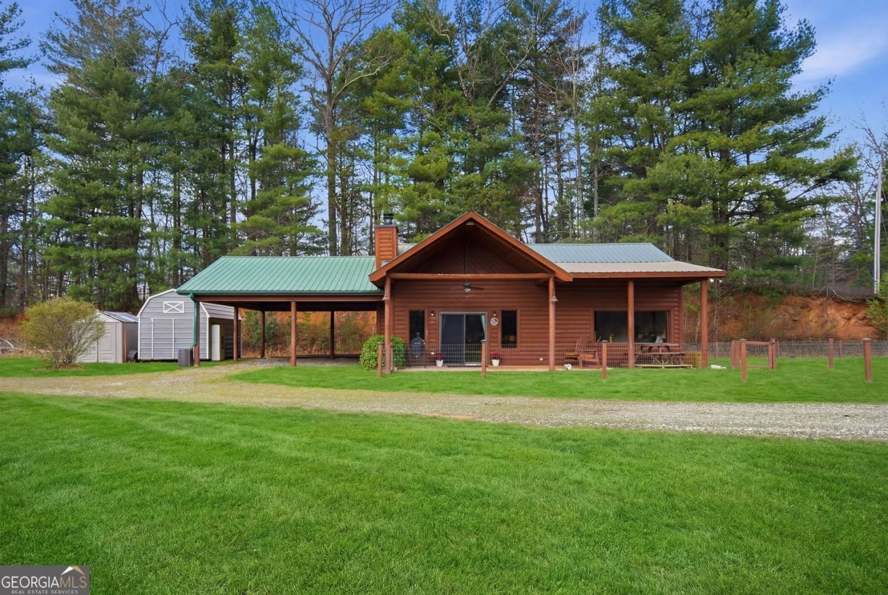 Flat Land. Mountain Views. Room for Your RV, Boat & Freedom to Breathe with No HOA. Escape to the North Georgia mountains and finally experience what buyers are searching for but rarely find... a cozy log cabin on level, usable land with mountain views and space to truly live. This inviting 2 bedroom, 1 bath cabin offers warm wood interiors, vaulted ceilings, and an easy, open layout that feels instantly relaxing. Whether you're sipping coffee on the porch or unwinding after a day on the lake, this home delivers that calm, mountain lifestyle. Step outside and it only gets better. Wide open, gentle acreage gives you room for your RV, boat, trailers, and all your outdoor gear with ease. A large carport and detached workshop add function, flexibility, and space to create your own setup. Lovingly maintained as a second home, this property is clean, simple, and move-in ready with a durable metal roof for peace of mind. Perfectly located between Blue Ridge and Blairsville, just minutes to Lake Blue Ridge, Morganton Point, hiking, dining, and everything that makes this area so desirable. If you've been waiting for a mountain property that offers peace, usability, and potential all in one... this is it!! Give me a call today to secure the peace you deserve.