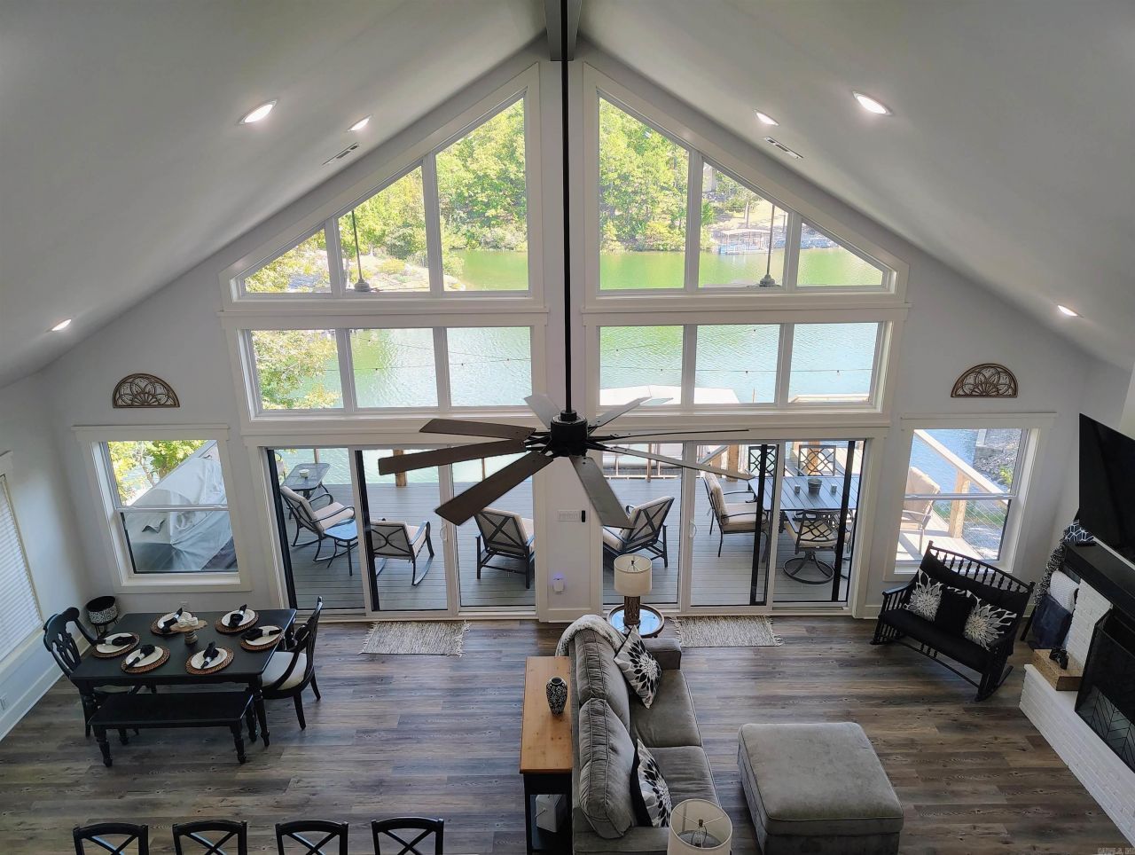 Whoa! Custom 2 Yr old Castleberry Resale with 121' of Lake Coronado WATERFRONT! Enjoy picture perfect views from every window in this smartly designed floorplan! With 2 guest bedrooms (each with their own full bath) upstairs, all of the remaining living space is on the MAIN FLOOR! The primary bedroom boasts an elegant ensuite with walk-in closet and laundry (alternate hall laundry room possible). The gourmet island kitchen features beautiful quartz counters, shaker cabinetry with slide-outs, and a smooth-top range! From the soaring cathedral ceiling to the rounded corners and wood-burning fireplace, every detail has been thoughtfully considered! The entertainment-sized deck faces east for amazing sunrises and shaded summer barbeques. Your own boat dock with lift awaits your trip out on 380 acre Lk Coronado (HSV's 2nd largest lake)! An extra pantry is designed for a potential lower level staircase access if a future basement is desired. Tough to find a newer home on the lake, but here it is! 26,000 acre Hot Springs Village offers 11 lakes & 9 golf courses + pickleball, tennis, fitness center, 2 pools, 2 marinas, performing arts center, & more! DON'T MISS THE ATTACHED VIRTUAL TOUR!!!