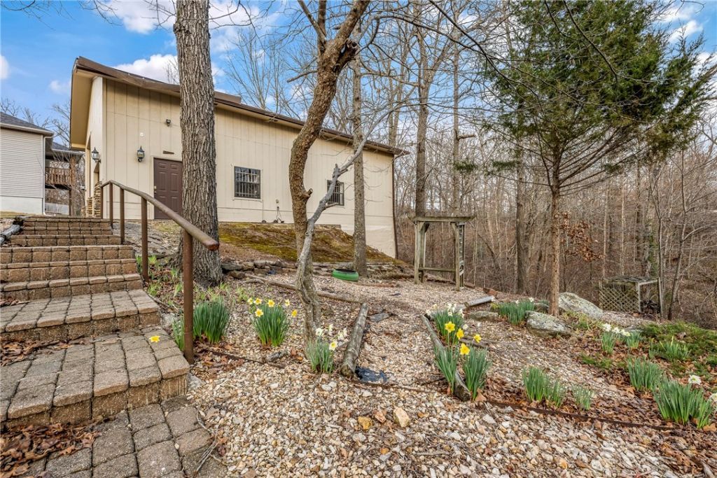 Exceptional 1408 sq ft detached workshop, perfect for storing your recreational vehicles or workshop! Situated on a double .84 acre lot, the main floor features; open Dining / Living Room, spacious eat-in Kitchen, stunning winter lake views, wood burning fireplace in Living Room, and Primary suite w/ private Bathroom & walk in closet. Spacious 2nd and 3rd Bedroom. Efficient Kitchen w/ pantry. Three seasons room complete with wood stove. Walk out basement features; Family Room w/ wood burning fireplace, 4th Bedroom, and dedicated Office / Video / Music Studio. Additional features; upper deck & lower level patio, and workshop location. 4 Bedroom septic. Bentonville Schools. Easy access to Hwy 71 / I49 for daily commute.