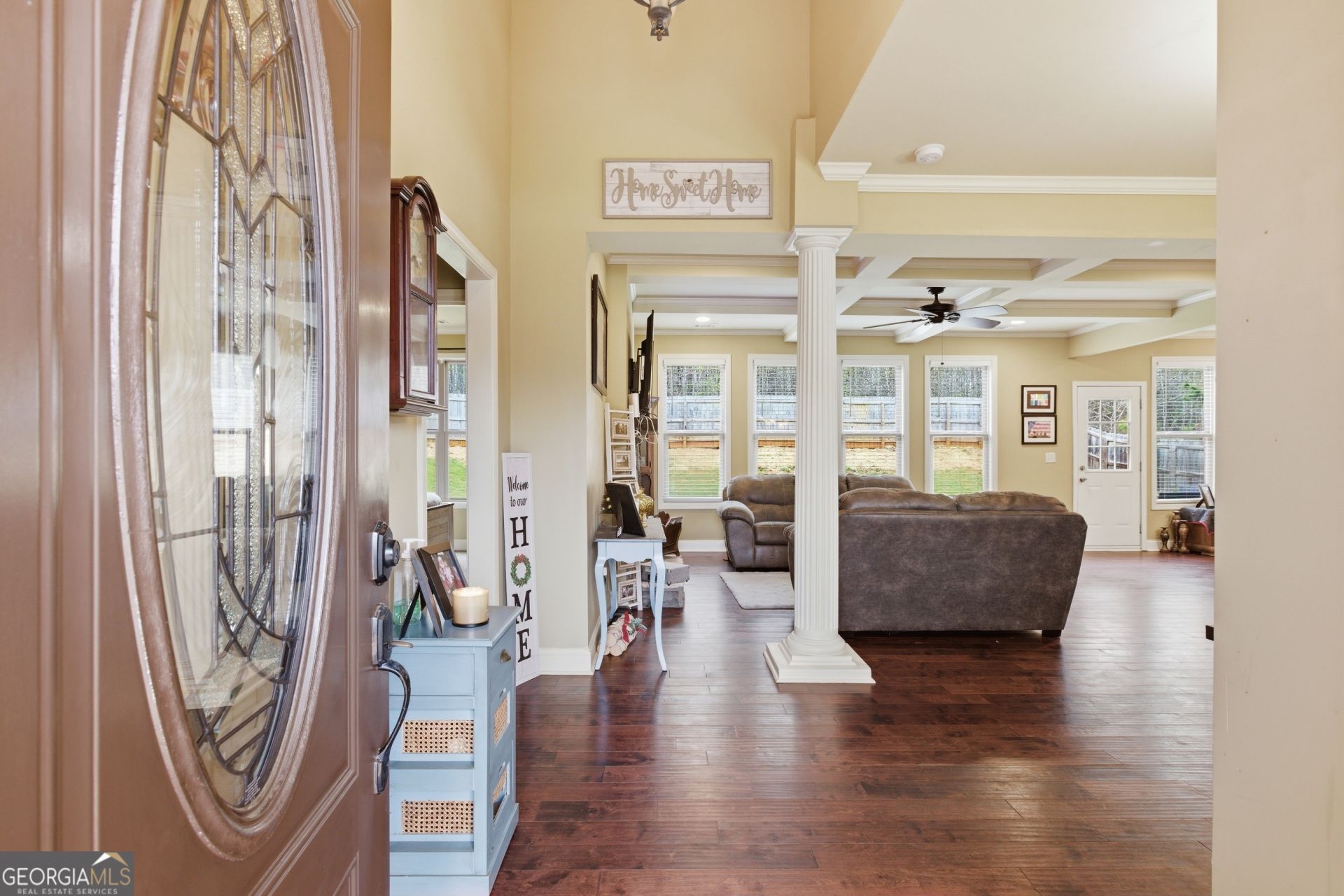 Come check out this 4-bedroom, 4.5-bathroom home on a generous 1.25-acre lot within an established neighborhood, this home perfectly blends craftsman elegance with everyday functionality. The heart of the home features an open-concept layout highlighted by a light-filled family room with coffered ceilings and a gourmet kitchen boasting a built-in desk and ample prep space. The primary suite is on the main floor, featuring a spa-like bath and generous closet space. Upstairs, you'll find three additional bedrooms, uniquely designed so that every bedroom has its own private full bath-perfect for guests or a growing family. Step outside to your expansive, fenced backyard, offering a secure and private oasis for kids and pets to roam. Situated in a premier location, you are just minutes from the Tanger Outlets, local dining, with effortless access to I-85 and Hwy 441. Don't miss this rare opportunity to own a home of this size on a large lot!