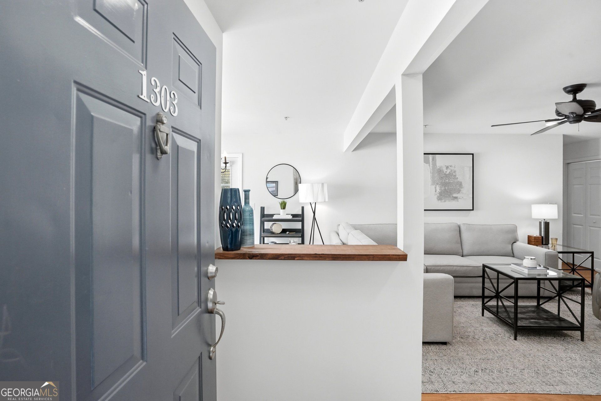 Welcome to 1303 Madison Lane, a top-floor, move-in-ready 3 bedroom, 2 bath condo in the heart of Smyrna, under half a mile from Smyrna Market Village and StillFire Brewing! This light-filled home features an open concept layout with a bright and inviting living space. The kitchen offers granite countertops, a matching granite island, recessed lighting, and stainless steel appliances that include an updated refrigerator and dishwasher, adding modern convenience. Step outside to your private balcony overlooking a quiet residential street, offering one of the most peaceful and desirable views in the community. It's the perfect spot for morning coffee or unwinding in the evening. The spacious primary suite offers vaulted ceilings, a large walk-in closet, and a private en-suite bath with a separate tub and shower. Additional highlights include hardwood floors in the main living area and kitchen, a dedicated laundry room with washer and dryer, and a 2022 HVAC system for added comfort and peace of mind. Enjoy a low maintenance lifestyle with access to the community pool, all while being conveniently located near the dining, shops, and festivals of Smyrna, with easy access to The Battery, I-285, and I-75. Schedule your showing today!