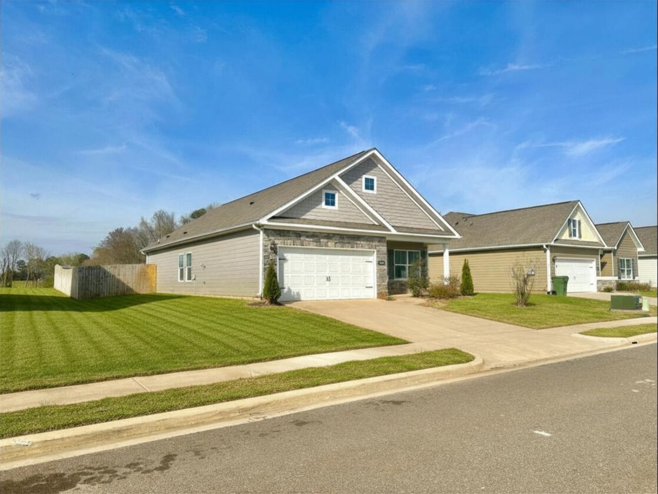 Don't miss this beautiful patio home, with the Piedmont floor plan. Packed with all the essential elements demanded by today's lifestyles, and all the beautiful finishes! This 3-bedroom 2-bath design has a covered front porch that leads to an open layout with a front flex room and centrally-located island kitchen. The spacious family room has direct access to the back yard, which can also be viewed from the luxurious owner's suite. The secondary bedrooms have deep walk-in closets, and a conveniently located hall bath and laundry room. Come see this one in person!