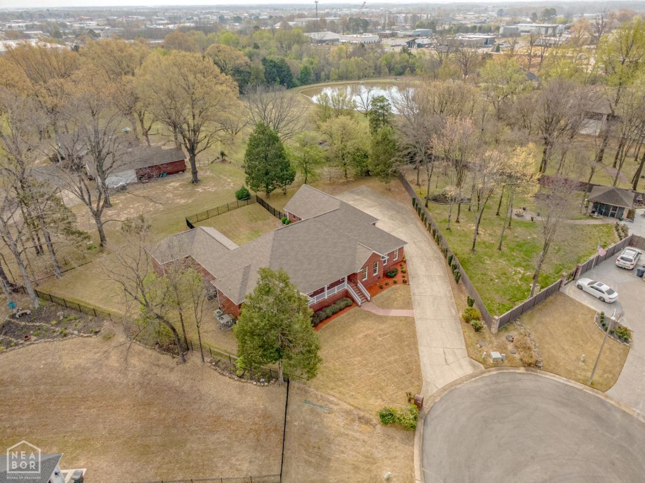 Welcome to Market 1304 Leominster Cove in the Highland Forest Sub. of Jonesboro, AR within the Jonesboro School District. Located at the end of a cove on a 0.57 +/- acre lot, this well crafted brick home offers 3 bedrooms, 3 bathrooms, and 3,190 sf of living space along with a 617 sf basement and a 447 sf attached shop providing excellent space for projects. The main level holds 2 primary suites, each offering its own en-suite w/ walk-in shower and walk-in closet. A 3rd bedroom and full bathroom w/ shower/tub combo are also located on the main level. Highlights include wood flooring, crown molding, a gas fireplace, and a formal dining room. The kitchen features custom cabinetry, center island, built-in desk, and walk-in pantry. A large laundry room also offers space for an office or hobby. There is ample storage throughout the home and floored attic space above the garage. The exterior features guttering, mature landscaping, wrought iron fencing, covered front porch, covered back porch, and a side-entry 2 car garage. Conveniently located in Midtown near favorite local amenities and just 1 hr from Memphis, TN. Call today to schedule your tour and make this custom house your home.