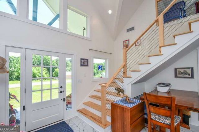 Enjoy the relaxing lifestyle of country living in a quiet, private neighborhood with central access to the great outdoors of Northeast Georgia. From 26 wineries to boating on Lakes Burton, Seed and Rabun and not too far away Lanier, river rafting/kayaking on the Chattahoochee River, hot air balloon races, Oktoberfest, and hiking/camping or glamping one of the MANY state parks in the area. There is plenty to do in the area from antiquing or shopping at local points of interest like Mark of the Potter, Historic Clarkesville Square, nostalgic Bavarian village of Helen, or Babyland General located in Cleveland. This custom built home of 2025 was well thought out. From the art deco ceramic tile backsplash , custom farmhouse kitchen shelves, large island with breakfast bar with pop-up power unit, to the stainless steel appliances, this home is a showstopper. For your convenience two split bedroom floorplan on the main level are well appointed for double couples getaway or independent living. Upstairs features a versatile, open plan with two large open loft areas for bedroom, office, game room, study/office or home gym. Lovely, peaceful feel to this beautiful home will welcome you home.