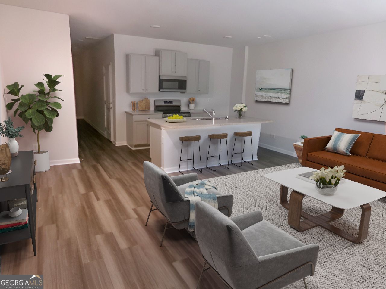 Nestled in a quiet, established neighborhood, this property offers a great opportunity for comfortable living or investment potential. The home sits on a peaceful setting with mature surroundings, providing privacy while still being conveniently located near shopping, dining, schools, Lake Sinclair amenities, Georgia College and State University and historic Milledgeville. 134 Pin Oak Trail NW, built in 2024, features three bedrooms and 1.5 baths with a thoughtfully planned open-concept great room that seamlessly combines the living room, dining area, and kitchen--perfect for everyday living and entertaining. The kitchen flows easily into the main living space, creating a bright and inviting atmosphere. There is a pantry, and the stove, microwave and dishwasher are included. Upstairs is the primary bedroom, with an en suite bathroom plus two additional bedrooms and another full bathroom. A one-car garage adds convenience and storage. Priced to sell and ready for its next owner--don't miss this opportunity. Some images in this listing have been virtually staged.