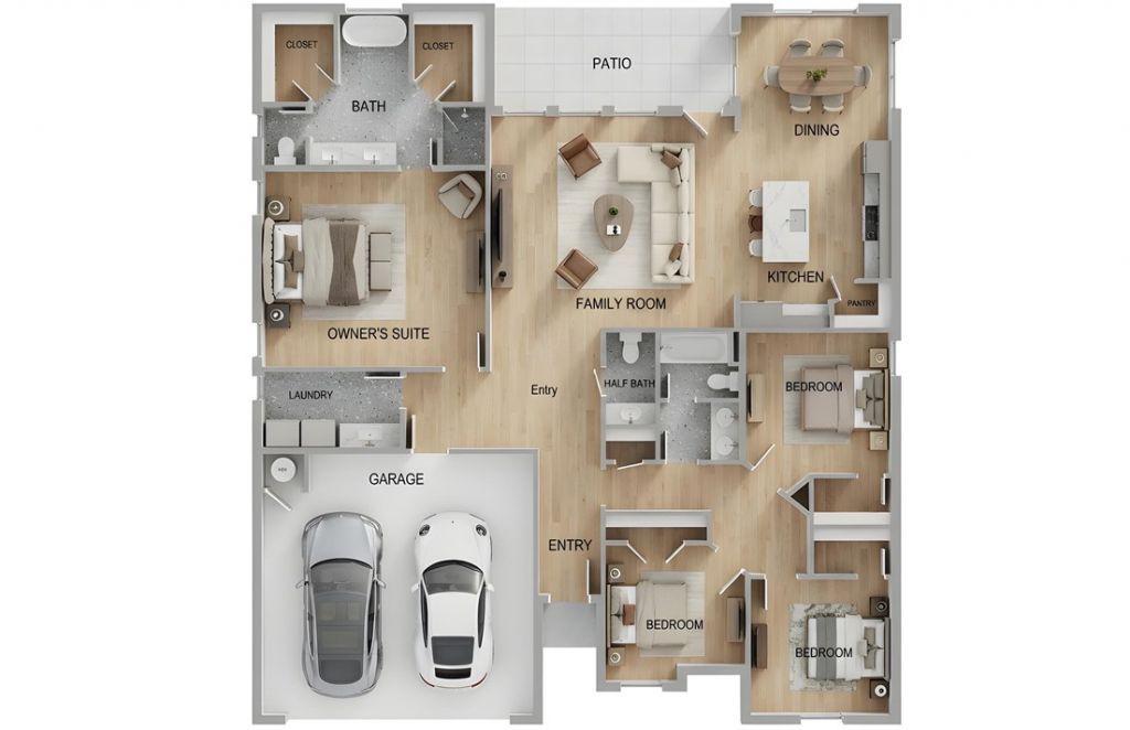 Great location! A thoughtfully designed 4-bedroom, 2.5-bathroom split floor plan that maximizes both space and comfort. The open-concept kitchen and living area create a warm, inviting space for gathering with loved ones. The kitchen features custom cabinetry, granite countertops, and stainless steel appliances, making it both stylish and functional. The primary suite is a private retreat, boasting a large tiled shower, double vanity sinks, and his-and-hers closets for ultimate convenience.
