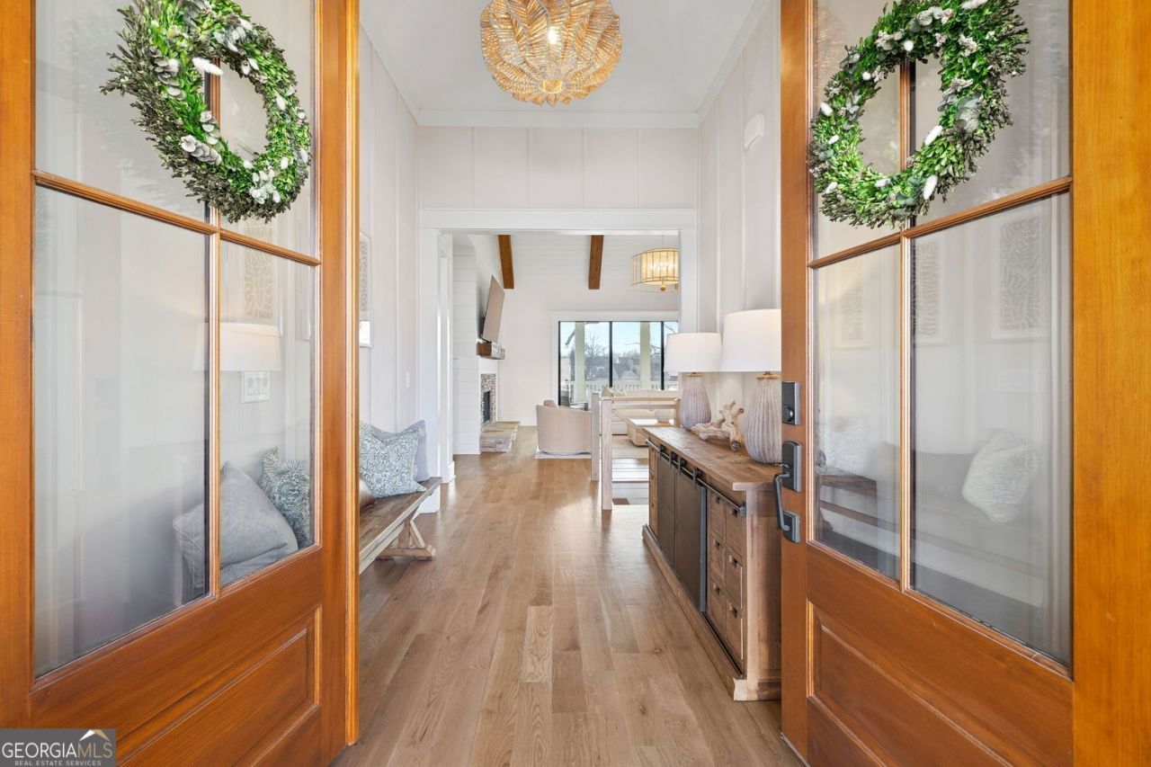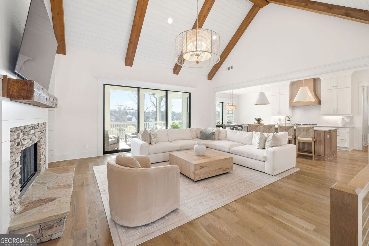Golf. Lake. Luxury. Experience a resort-style lifestyle in Chestatee with access to Lake Lanier, featuring a community marina, boat ramp, and scenic lakeside amenities. Don't miss this rare opportunity to own a virtually new, custom-built luxury home on highly sought after Night Fire Lane in the Linkside section of Chestatee. This property is perfectly positioned along the stunning 9th hole with panoramic tee to green views. Just one year old, this residence offers an exceptional blend of refined craftsmanship, modern design, and relaxed Southern elegance. Designed for seamless indoor-outdoor living, the home features multiple covered outdoor spaces, including an extended oversized patio and a breathtaking vaulted, fireside screened-in deck. The outdoor living area flows effortlessly into a separate vaulted dining space, offering both flexibility for entertaining and everyday comfort, all wrapped in classic Southern charm. From the moment you arrive, the attention to detail is unmistakable. Cedar porch posts, gas lanterns, wood French doors, and a welcoming covered entry set the tone for the elevated finishes found throughout the home. Inside, extensive upgraded trim, beautiful accent walls, and shiplap add character and warmth to every space. The owner has also enhanced the property with premium lighting, a fully fenced backyard, and extensive landscaping and hardscaping, including beautiful stonework, further elevating the home's appeal. The open-concept floor plan is both inviting and functional. The great room showcases a dramatic vaulted ceiling with exposed beams, a custom gas-log fireplace, and built-in cabinetry, seamlessly connecting to the dining area and chef's kitchen. The kitchen is a true showpiece, featuring a large gathering island with designer lighting and premium JennAir Professional Series stainless steel appliances, including a gas cooktop, double ovens, microwave drawer, and dishwasher. Custom cabinetry extends to the ceiling, complemented by a wood vent hood, beautiful Taj Mahal quartzite countertops, tile backsplash, and a spacious walk-in pantry. The dining room features a wet bar, perfect for entertaining guests. Expansive 12-foot Pella sliding doors flood the home with natural light and open effortlessly to the outdoor living areas, creating a perfect flow for gatherings and relaxation. The primary suite is a private retreat with serene golf course views and a spa-inspired bath, complete with dual vanities, a soaking tub, and a zero-entry glass shower. The daylight terrace level continues the home's elevated design, offering a large living area with a fireplace and wet bar, two additional bedrooms-including a secondary primary suite-a dedicated office, and a spacious finished bonus room ideal for a media room, gym, or recreation space. The terrace level also opens to an extended stone patio, enhancing the home's outdoor living options. The fully fenced landscaped backyard provides privacy and flexibility, with ample space for a future pool and easy access to the golf course, perfectly complementing the home's indoor-outdoor lifestyle. A three-car garage provides ample space, including room for a golf cart, making access to the course effortless and perfect for true golf-lifestyle living.
