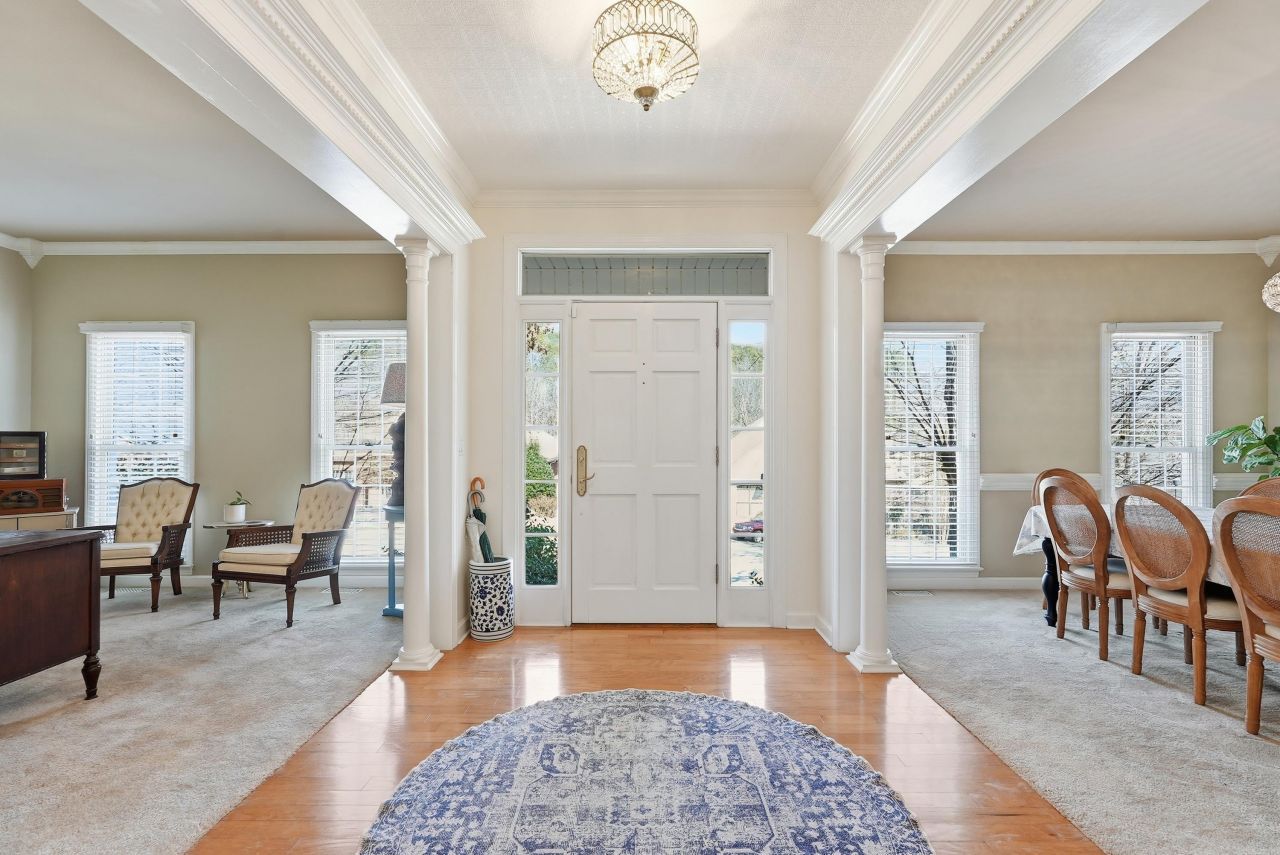A classic two-story Colonial updated for modern living. This 4-bedroom, 3.5-bath home blends timeless architecture w/ smart, functional upgrades. The remodeled kitchen has quartz countertops, stainless appliances, gas range, double convection ovens, Samsung Smart refrigerator, and 2 walk-in pantry's. Formal dining & a spacious living room provide comfortable gathering spaces. Fresh interior paint, updated lighting & hardware, modern fixtures, & upgraded outdoor lighting create a cohesive finish throughout. Upstairs, the primary suite is privately positioned on one end of the home, while two generously sized bedrooms share a Jack-&-Jill bath. On the opposite side, a large bedroom with its own ensuite bathroom offers ideal flexibility for guests or in-laws. An expansive deck overlooks the fully fenced backyard. Major improvements include a 2024 roof, full-home generator, & Vivint security system w/ cameras, glass-break, & thermostat control. The side-loading two-car garage enhances functionality while maintaining the homes curb appeal. Carriage Creek Community Park courts to be resurfaced on May 1, including 1 full-size tennis court, 2 pickleball courts & 1/2 basketball court.