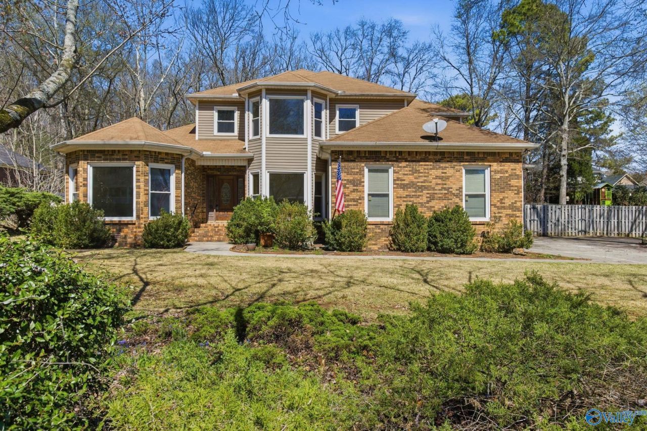 Beautiful 5BR/3BA two-story home with 3,350 sqft on a quiet cul-de-sac at the foot of Rainbow Mountain. Private, beautifully landscaped yard with privacy fence, large deck and hot tub. Main level features hardwood floors, 9ft ceilings, living room with bay window, dining room and spacious kitchen with custom cabinets,oversized island, pantry, and eatin area with french doors to beautiful backyard. Open to Family room with fireplace and built-ins. Main-level bedroom/study with 3/4 bath. Upstairs primary suite with trey ceiling and glamour bath. 3car garage with 8ft door and large workshop, 3 storage buildings,2 HVAC systems, gas down. Convenient to Research Park, Redstone Arsenal, shopping