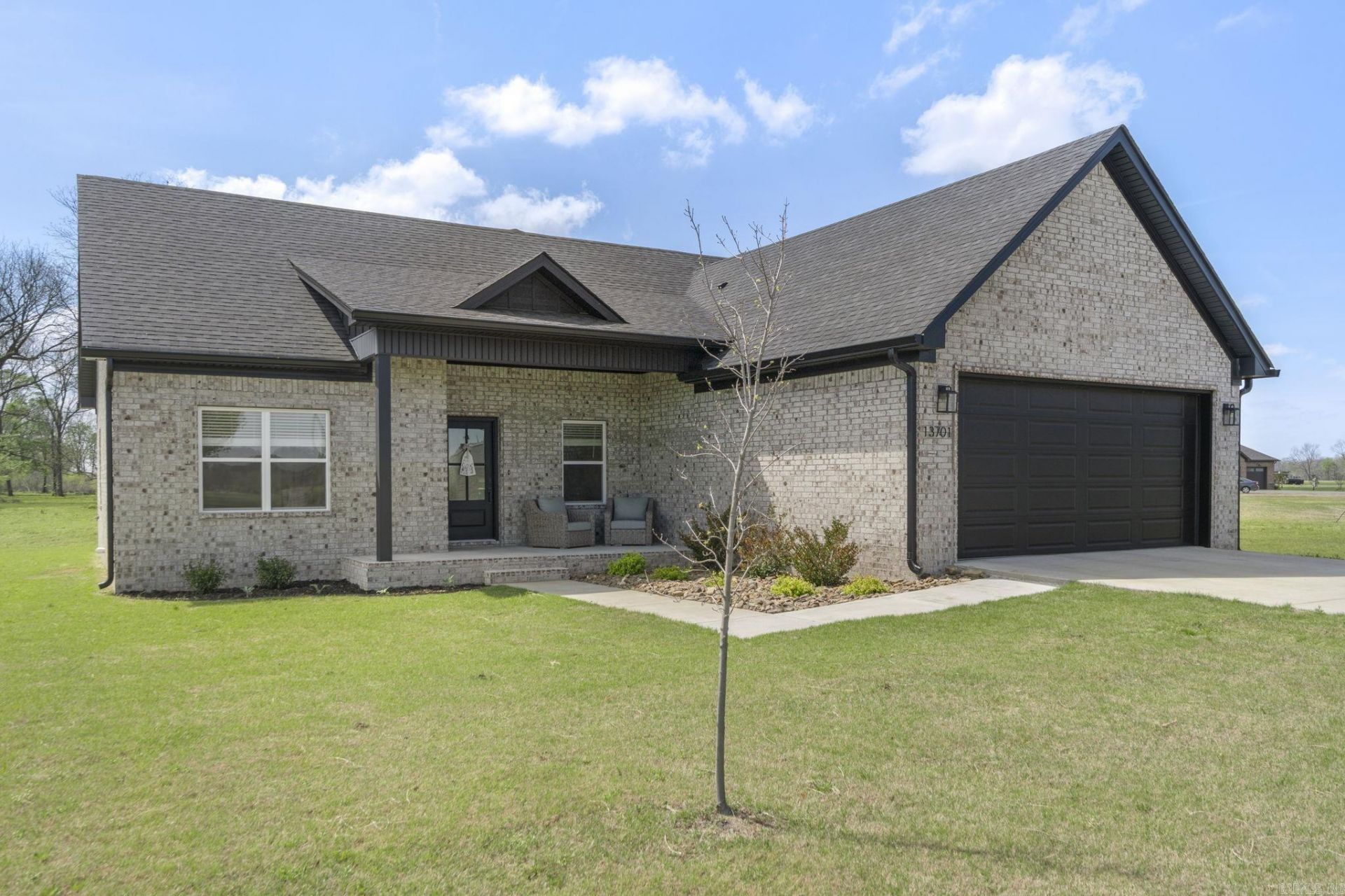 Welcome home to this beautiful, turn key property built in 2024. Nestled on a spacious 1.41 acre lot, this meticulously designed split floor plan home offers modern living at its finest. This property features three bedrooms, two baths, and an office with a window! The open floor plan offers a seamless flow from the entry way, to the living room (with a brick, wood burning fireplace), kitchen, and dining space. In the kitchen, you'll find a walk-in pantry and ample counter space. The laundry room is conveniently located across from the lockers and between the garage and primary bedroom. The primary bath features a double vanity with extra storage, a walk-in shower, and a linen closet. Step outside to relax on the covered patio, ideal for outdoor entertaining and grilling, while the expansive yard offers plenty of room for activities and gardening. You will also have access to Horseshoe Lake with a fishing pass! Agents, see remarks.