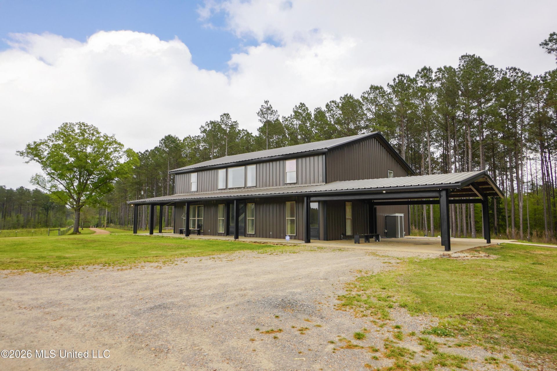 If you want land, privacy, and something that actually has a presence, this one delivers.Located in Terry, MS, you still get the benefit of being just minutes from the interstate, making it easy to get into town when you need to.The entrance alone makes an impression. A long private gravel drive leads you up to a gated entry that opens to 10 acres of usable land with wide open views in every direction.The home is a 3,548 sqft barndominium designed for space and functionality. It features 6 bedrooms, 4 full bathrooms, 2 half baths, and an office or flex space depending on your needs. The layout is open and filled with natural light, and the high ceilings make the entire home feel even more expansive.The kitchen is the centerpiece of the home with a large quartz island, farm sink, walk in pantry, and plenty of storage. It flows directly into the main living area, making it ideal for both everyday living and entertaining.The primary suite is located on the main floor and includes a soaking tub, double vanities, a tiled shower, and a spacious walk in closet with the washer and dryer conveniently built in.Upstairs you will find four additional bedrooms along with a bonus space that can be used as a playroom, second living area, or anything else you need.Outside, the wraparound porch, metal roof, and peaceful setting make it easy to enjoy the property year round. The land is partially fenced and overlooks a 7.6 acre lake, with the option to purchase additional acreage up to 53 acres total.A short distance from the house is a 42 by 75 shop on a concrete slab with 5 garage bays and water hookup, giving you plenty of room for equipment, hobbies, or business use.This is a property that is hard to replicate and even harder to find. If you want space, privacy, and something that stands out, it is worth seeing in person.Reach out to schedule your private showing.