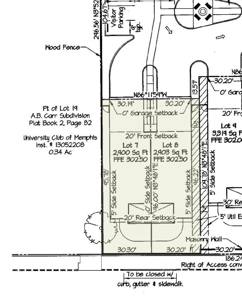 Recently developed Luxury Gated Townhome Community located in the heart of Midtown Memphis. Lots 1 and 2 are sold together listed at $95,000 each and selling for a total Sales Price of $190,000.00. Street Addresses are 1395 Club Gardens for LOT 7 and 1398 Club Gardens for LOT 8. Subdivision Restrictions require the homes on Lot 7 and Lot 8 to be constructed at the same time. See plans attached in Documents