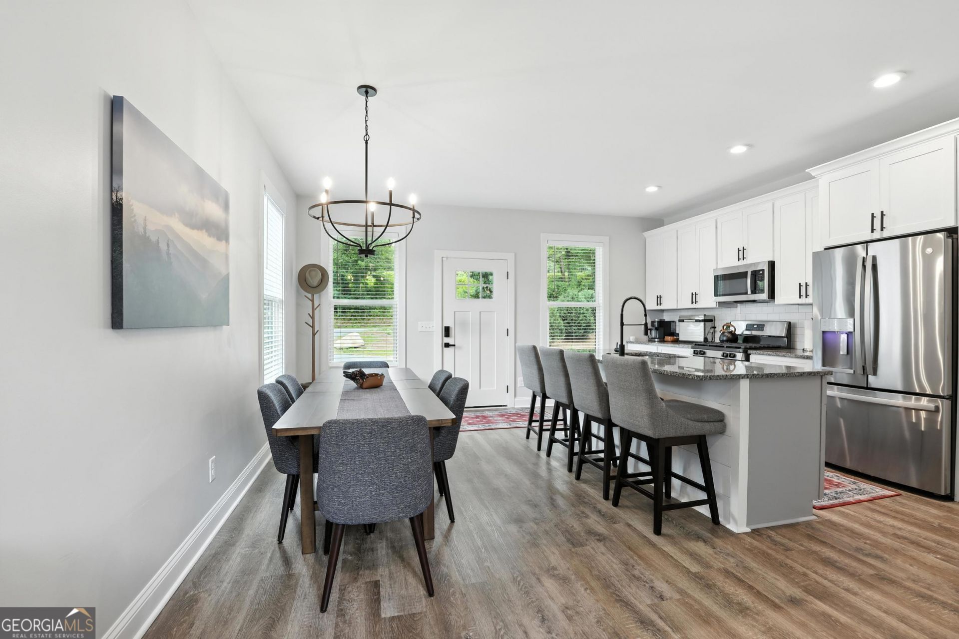 Fully furnished and almost brand-new end unit townhome in the heart of Clayton! Excellent STR opportunity with 4BR/2.5BA above grade and finished terrace level with separate kitchen, bathroom, & living area. Plenty of area to install a murphy bed and make this an excellent studio space to rent! Separate entrance with its own garage and patio area! This spacious home offers the primary bedroom suite on the main level with walk in closet. Primary bath has large tile shower, double vanities, and granite counter tops. Kitchen has all SS appliances, gas stove, granite countertops w/ tile backsplash, complete with large island and formal dining area to entertain all your guests comfortably. Upstairs boasts 3 well appointed bedrooms, full bath, and cozy reading/relaxing area! Need space outside?? This home has it! Screened in porch overlooking the creek as well as open deck space! Multiple areas to relax and enjoy the rushing sounds of the majestic Stekoa Creek below. Crossing the bridge over the creek, you will find a hiking trail for morning jogs or evening strolls. Dog park next to unit for your furry friends to enjoy! Excellent area for living off the beaten path but close to all the high-end conveniences this lovely area has to offer. High speed internet is available and established at home! Come live in the beautiful northeast Georgia Mountains!!