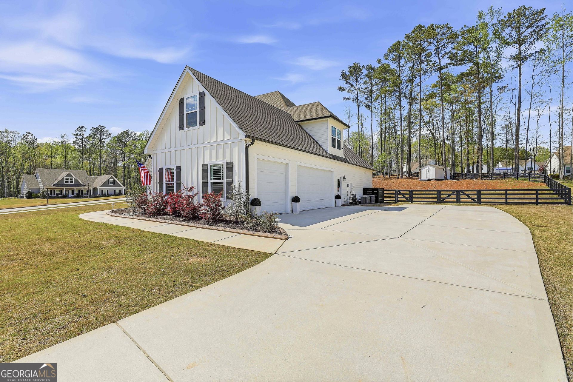 New Listing Located in the highly desirable Gordon Oaks community, this exceptional 2022-built residence presents like new and showcases refined upgrades throughout. Offering 5 bedrooms, 3.5 bathrooms, and a spacious 3-car garage, the home features a bright, open-concept design ideal for both everyday living and entertaining. The main level highlights a stunning coffered-ceiling great room and a chef-inspired gourmet kitchen complete with an oversized island, farmhouse sink, double ovens, and a gas cooktop. The luxurious owner's suite is conveniently located on the main floor and features a spa-style bath designed for relaxation. Upstairs, you'll find a versatile bonus room, dedicated office or flex space, and four generously sized secondary bedrooms-perfect for family or guests. Additional enhancements include a screened-in patio, plantation shutters, spray foam insulation, and a 14-zone irrigation system. The exterior is equally impressive with custom concrete curbing, built-in landscape lighting, and a fully fenced backyard complemented by a 12x16 storage shed. Enjoy peaceful outdoor living with beautiful scenery in a welcoming, family-friendly neighborhood known for its strong sense of community.